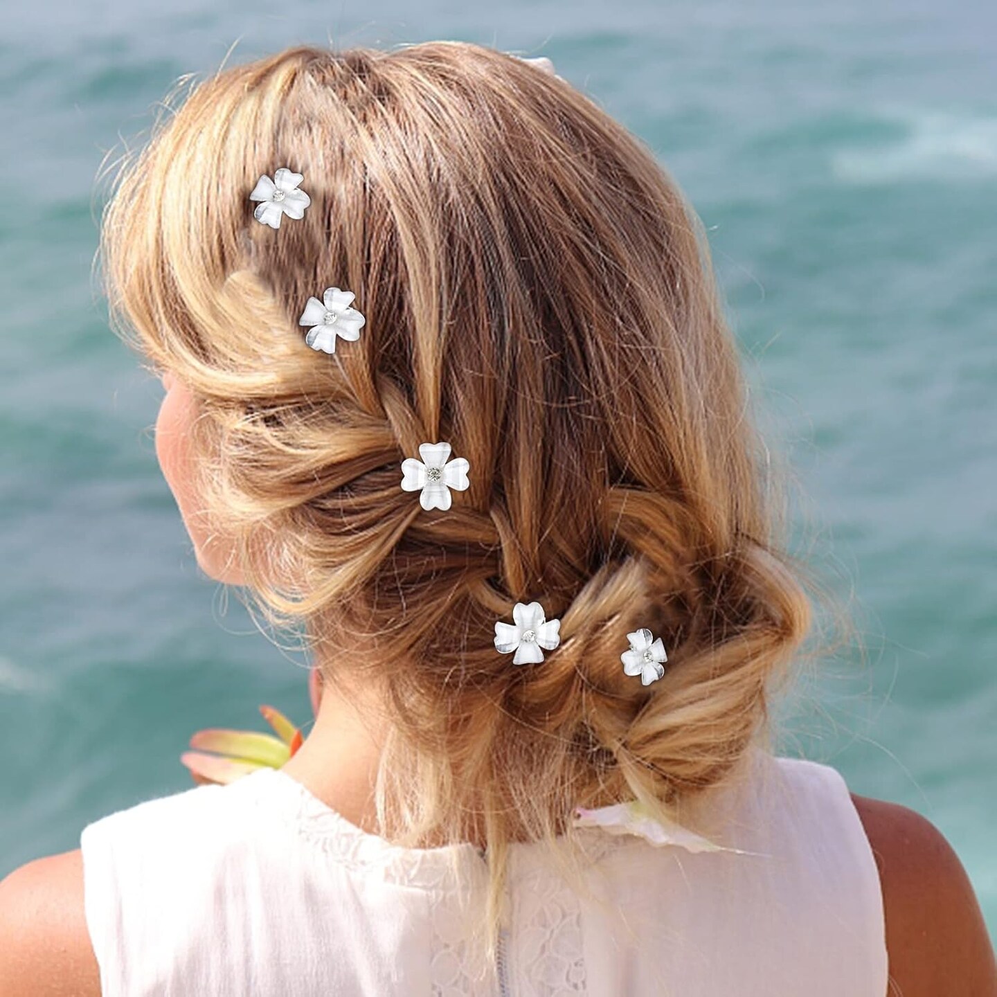 20Pcs Mini White Flower Hair Clips with Rhinestone Cute Hair Pins