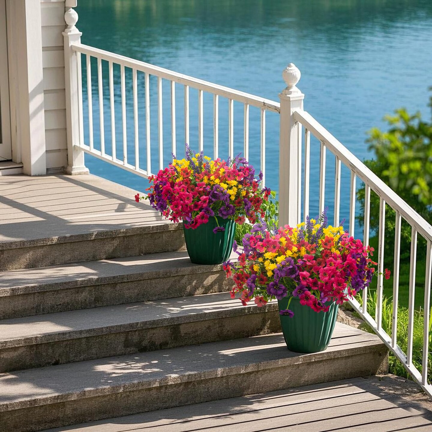20Pcs UV Resistant Artificial Flowers Outdoor, Realistic Faux Greenery Shrubs with Rust-Proof Stems - Waterproof Fade-Proof Hanging Plants for Garden, Porch, Patio, Cemetery Decor (All-Season Durable)