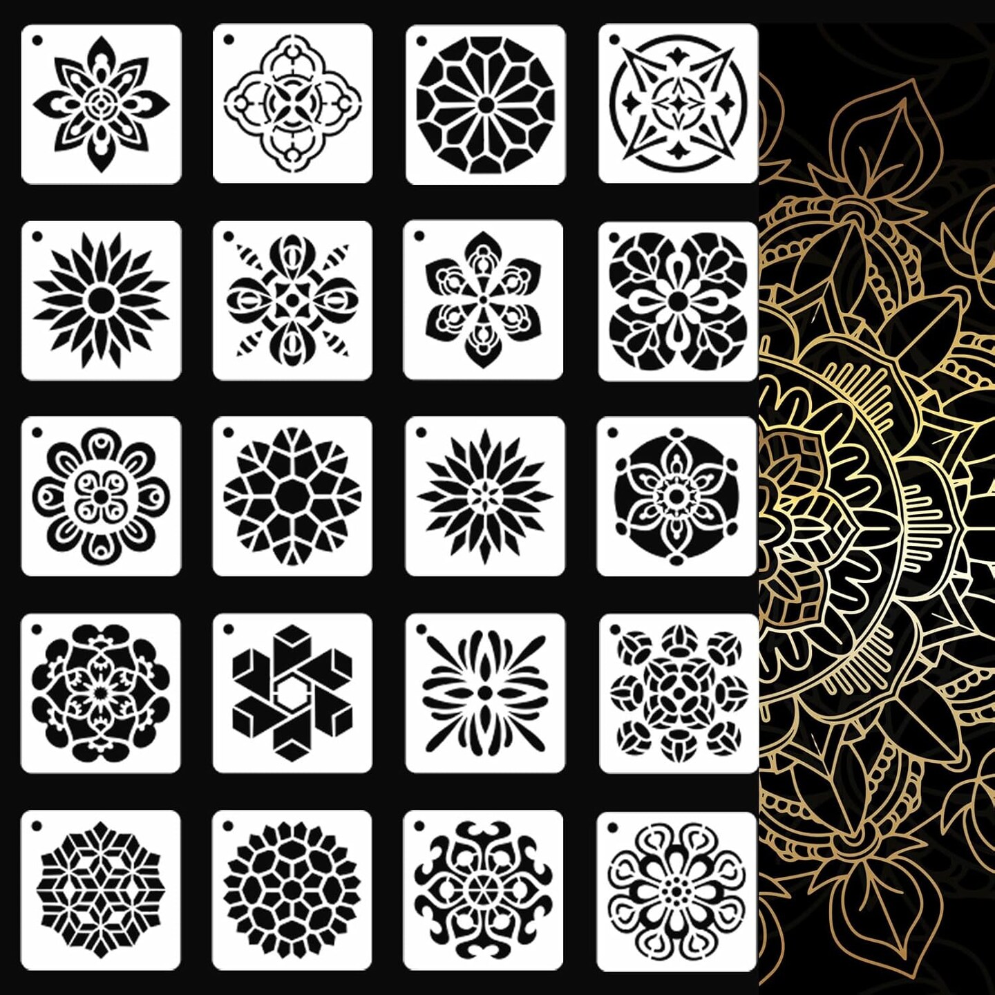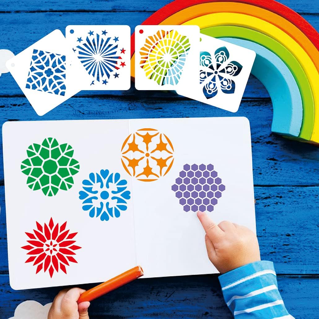 20-Piece Mandala Flower Stencil Set (3 Inch) – Reusable Plastic Stencils for Rock Painting, DIY Crafts, Canvas, Wood, Fabric & Home Decor