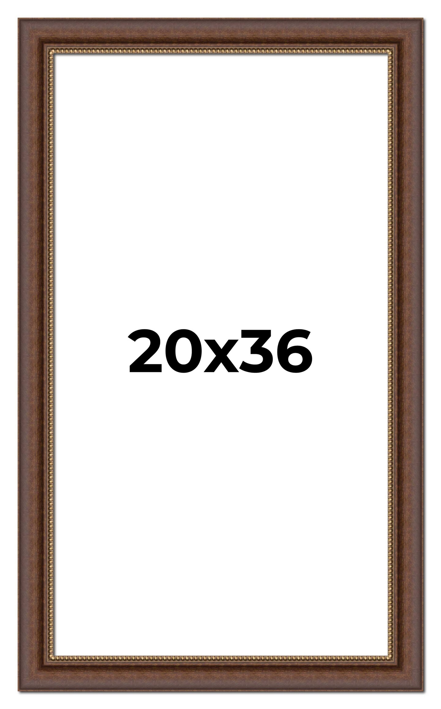 20x36 Traditional Brown Picture Frame - UV Acrylic, Foam Board Backing, Hanging Hardware