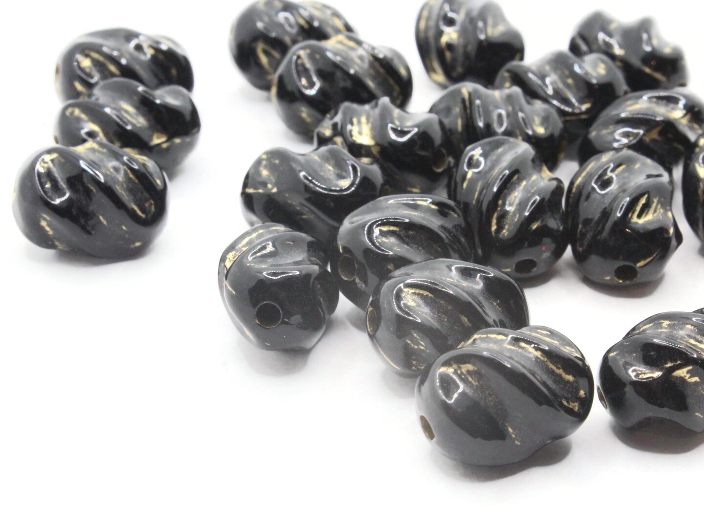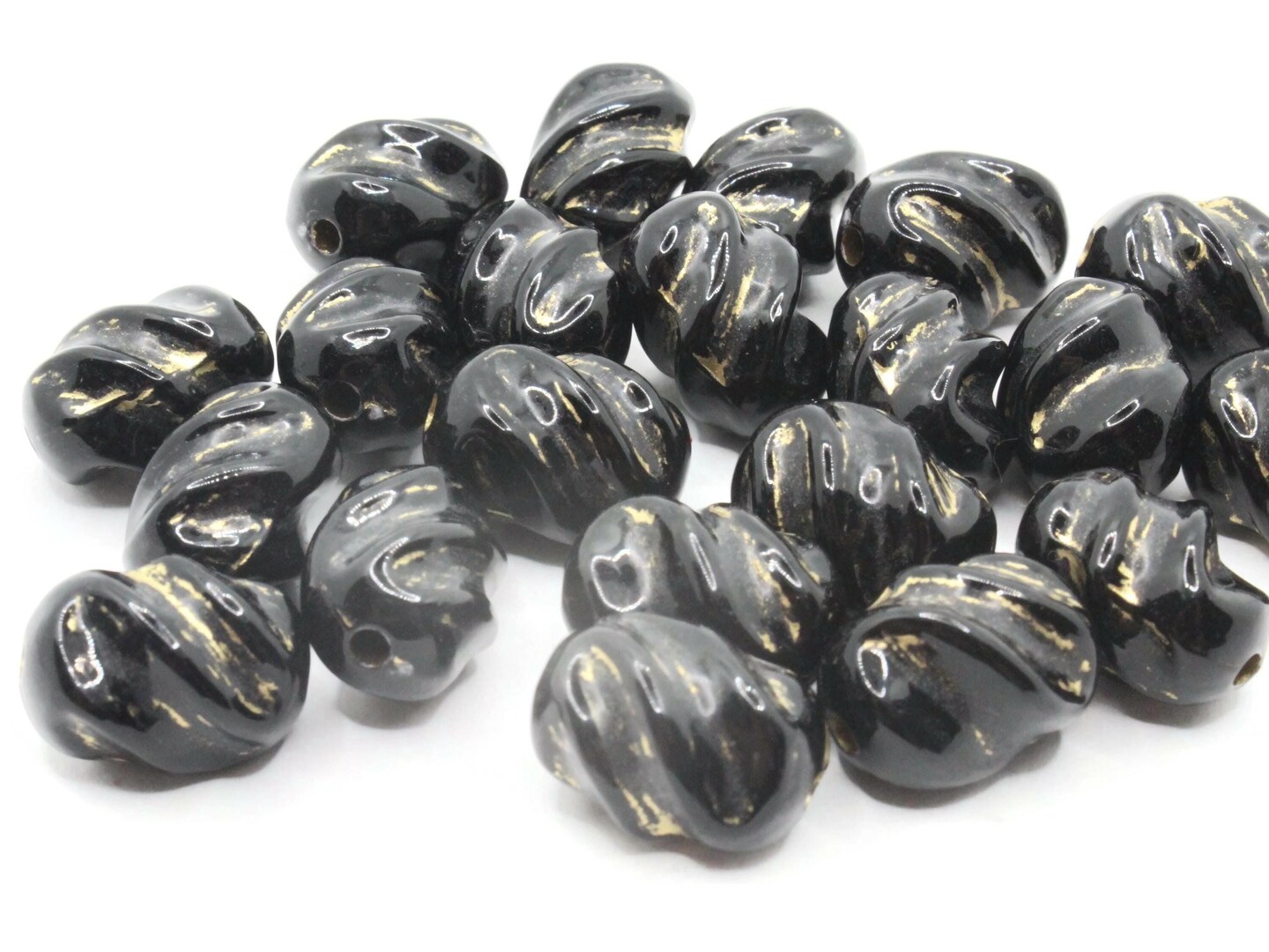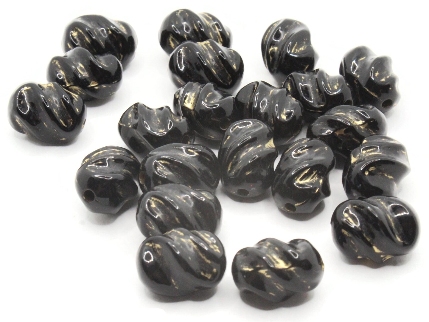 21 16mm Black and Gold Twisting Tube Plastic Beads