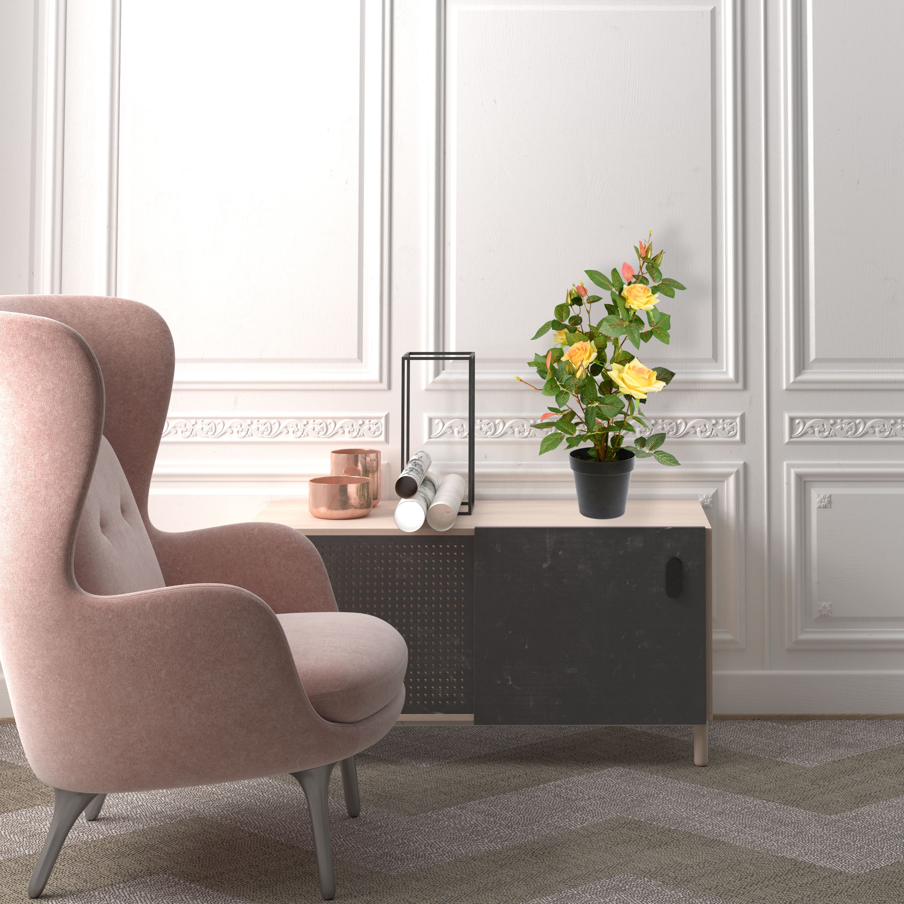 21" Artificial Yellow Rose Plant in Pot
