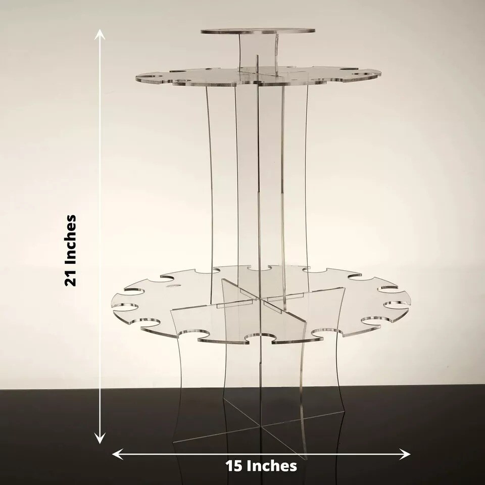 21" Clear 3-Tier Round Acrylic Champagne Glass Flute Holder DISPLAY STAND Party