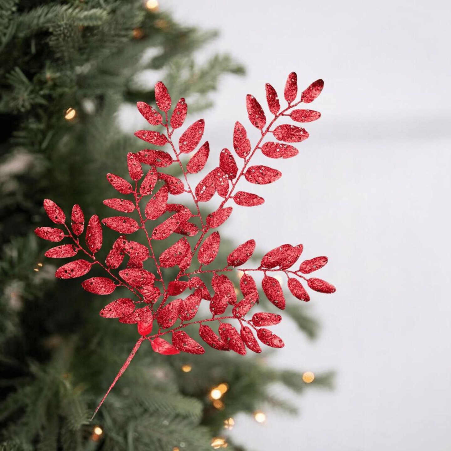 21" Glitter Honey Locust Spray: Red