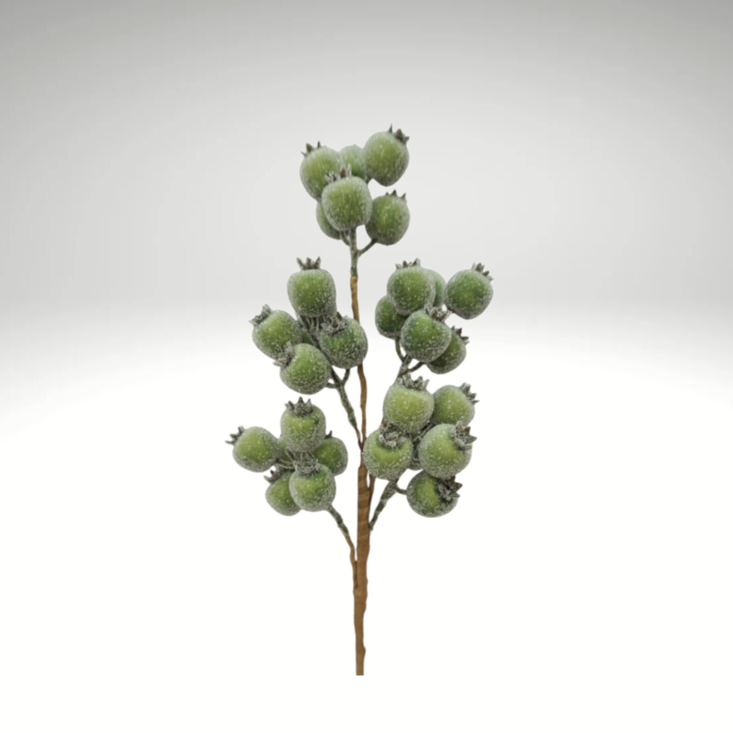 21" Green Iced Berry Spray – Artificial Frosted Berry Stem-255738