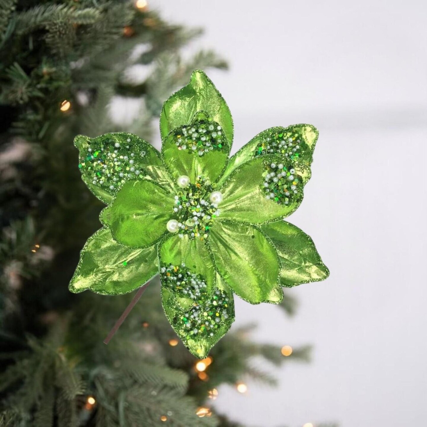 21" Sequin Magnolia Bloom Spray: Green