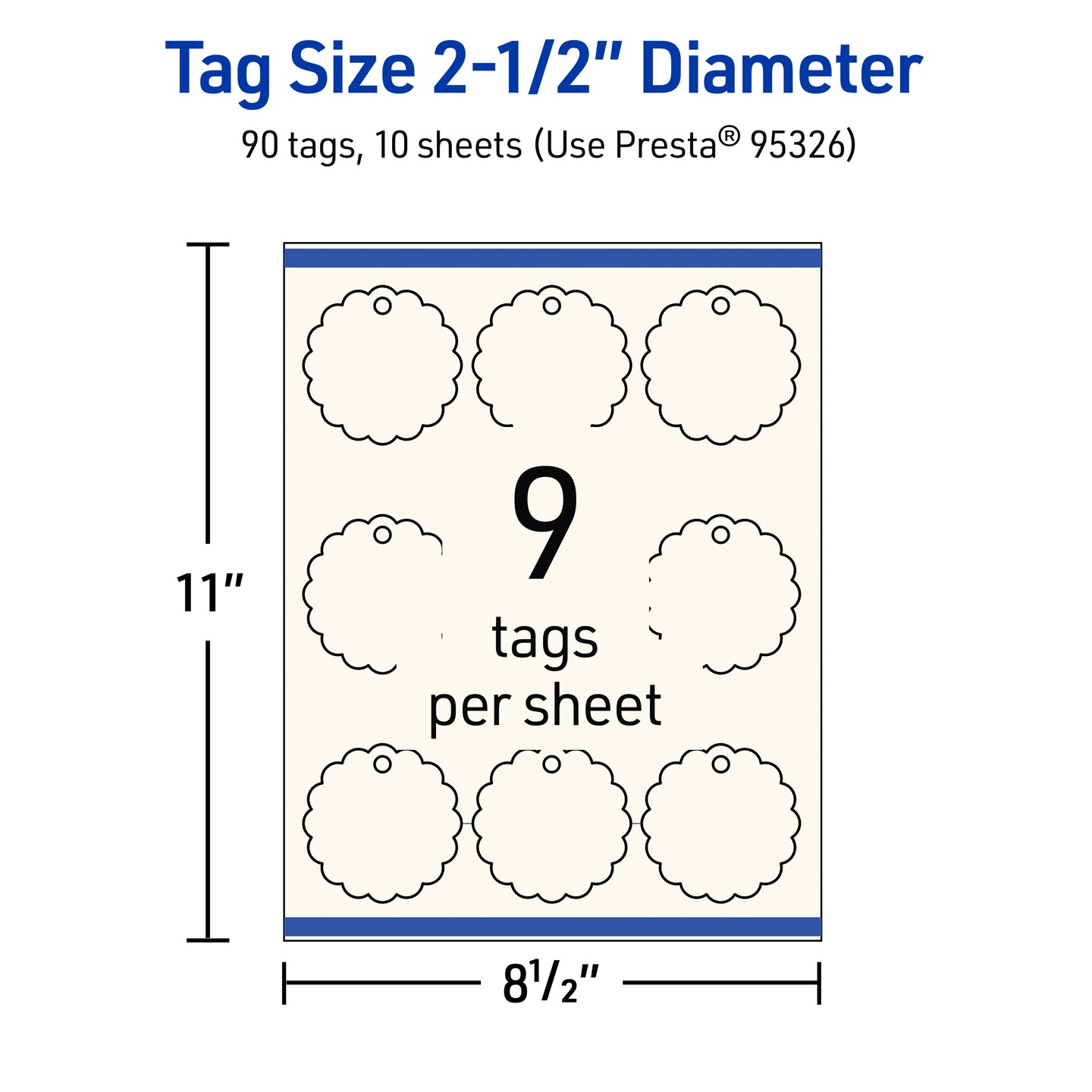 2-1/2" Diameter Round Scalloped Edge, Matte Ivory Printable Tags