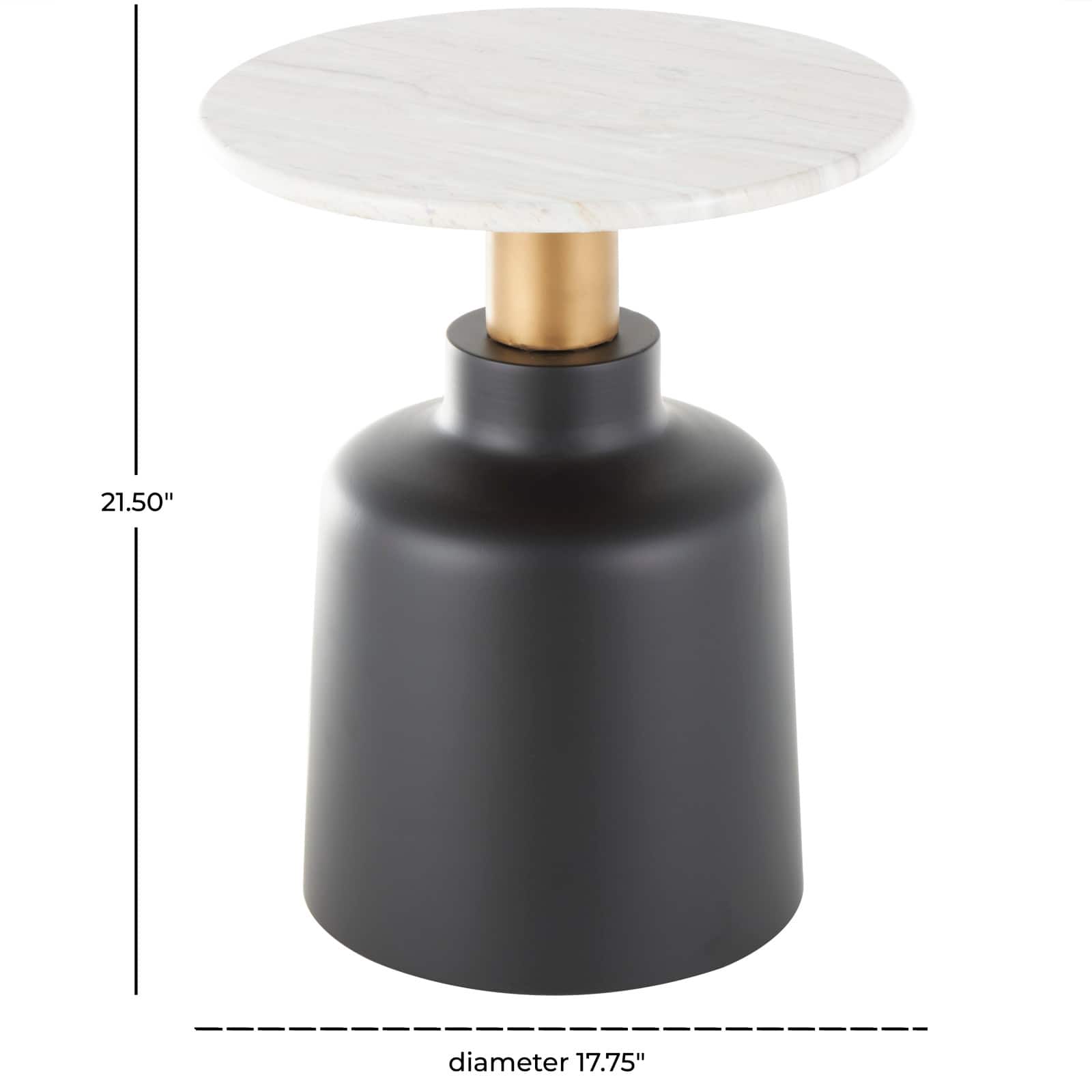 21.5" Black Metal Pedestal Accent Table with Faux White Marble Top