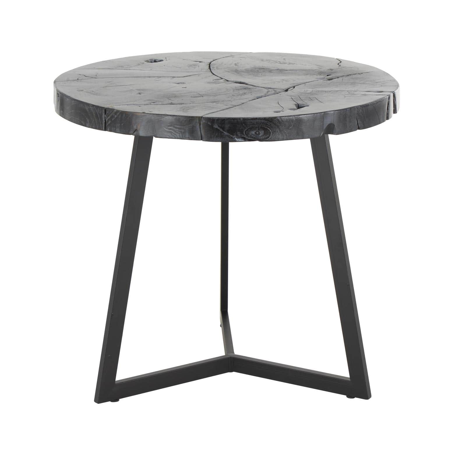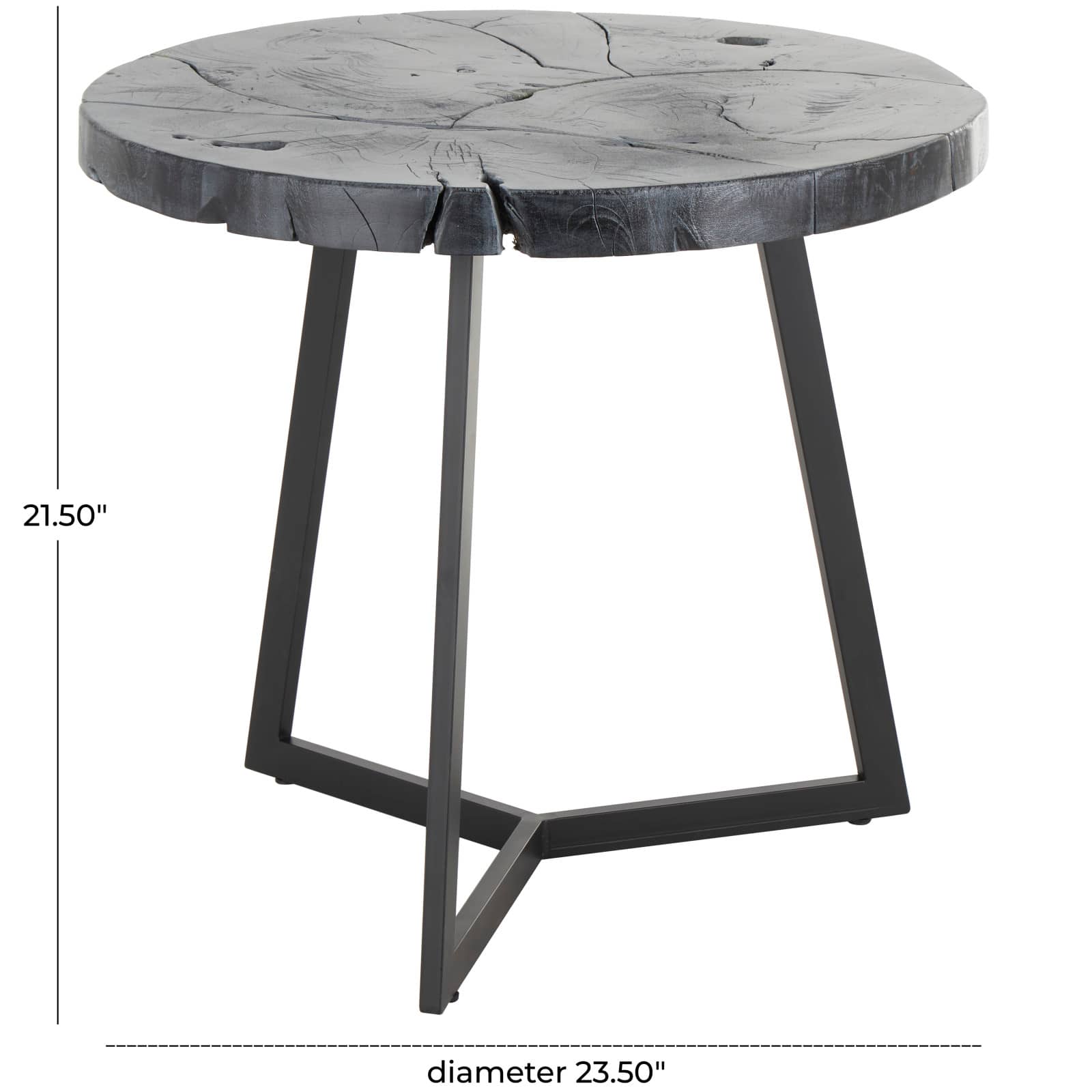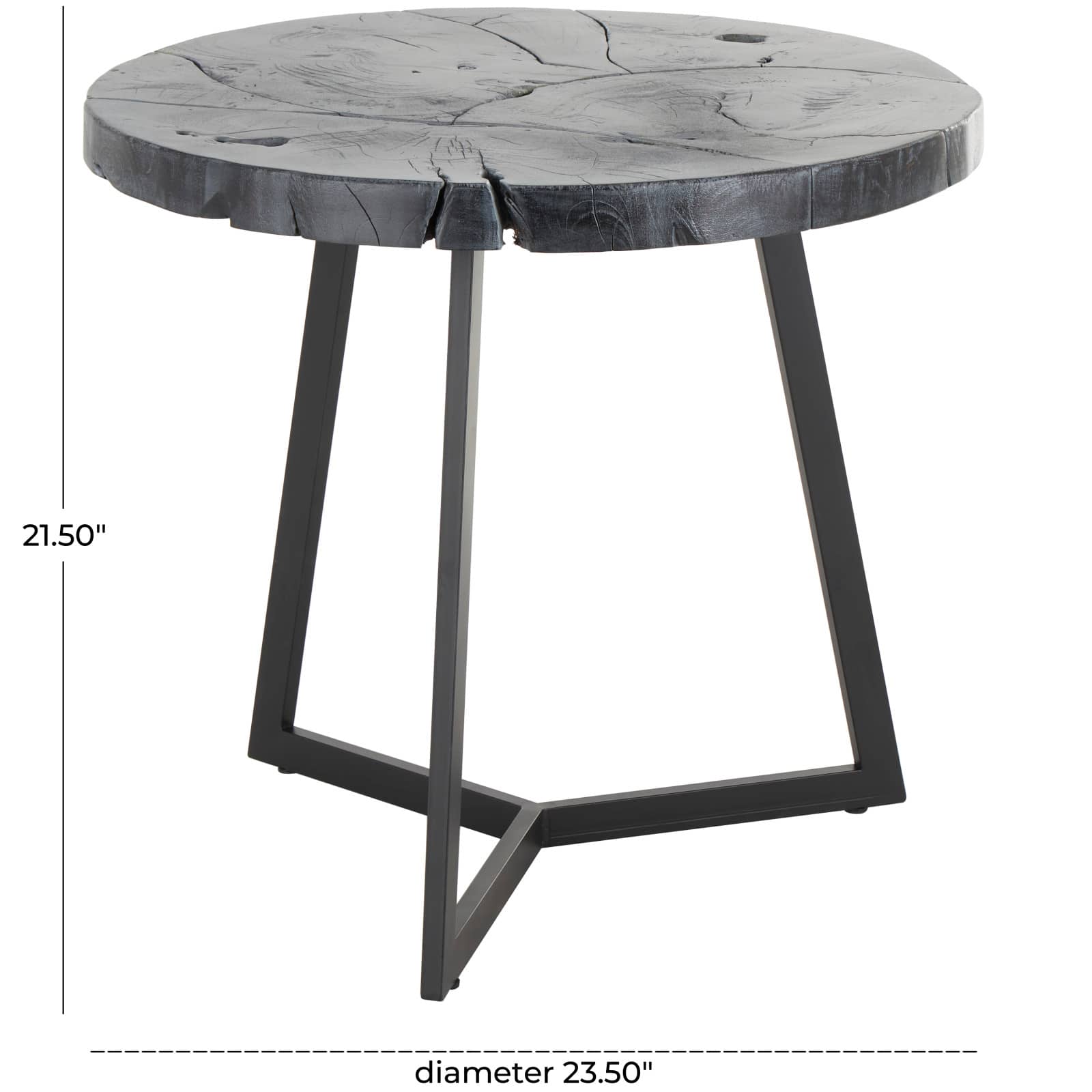 21.5" Black Teak Wood Handmade Live Edge Accent Table with Black Metal Base
