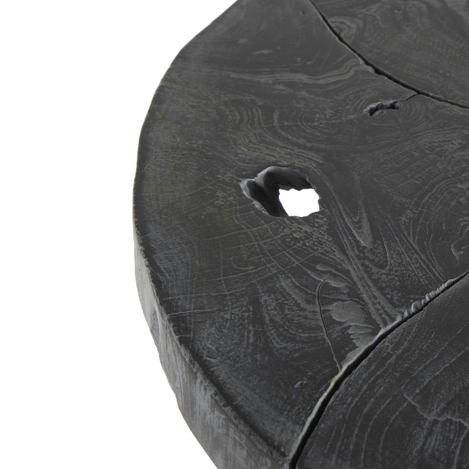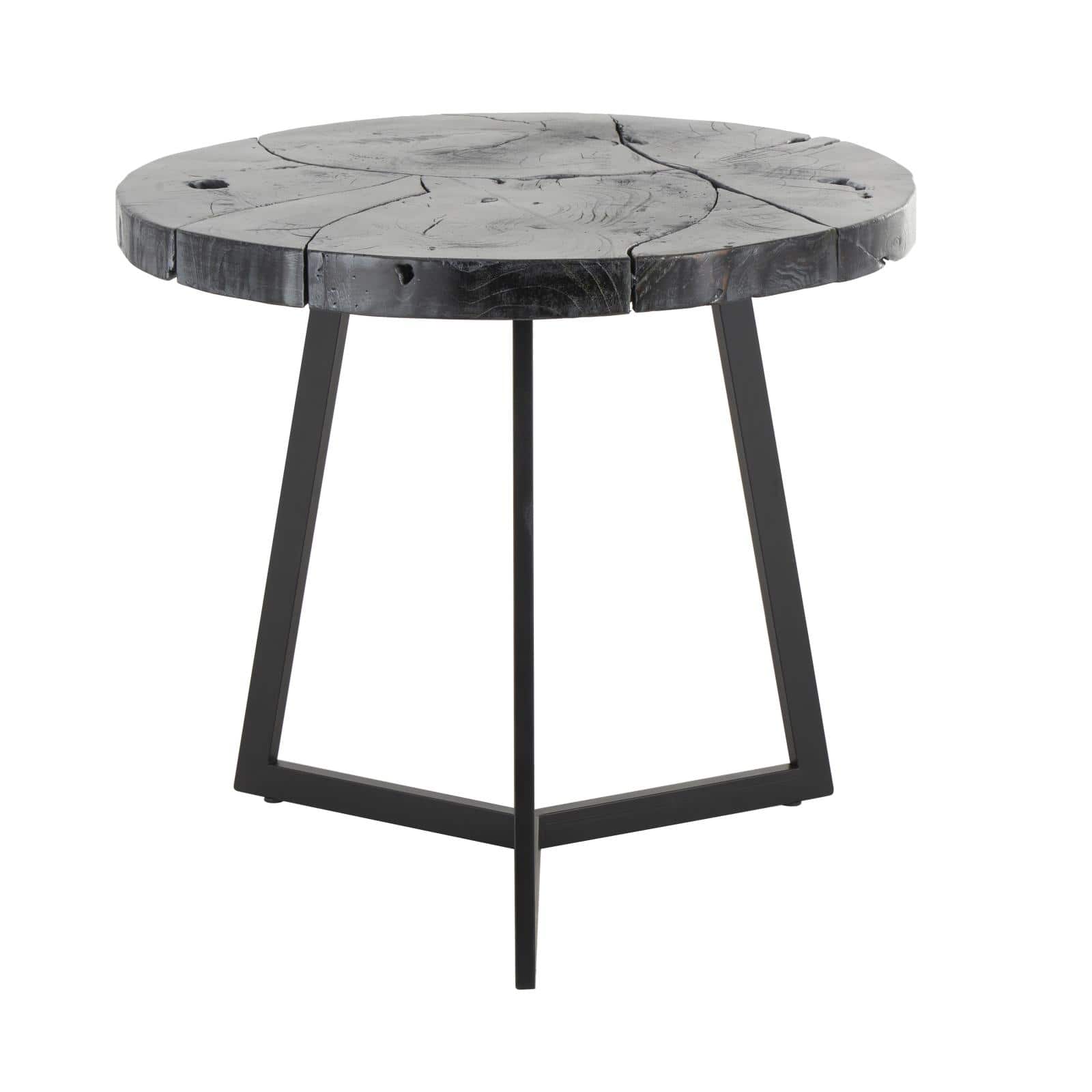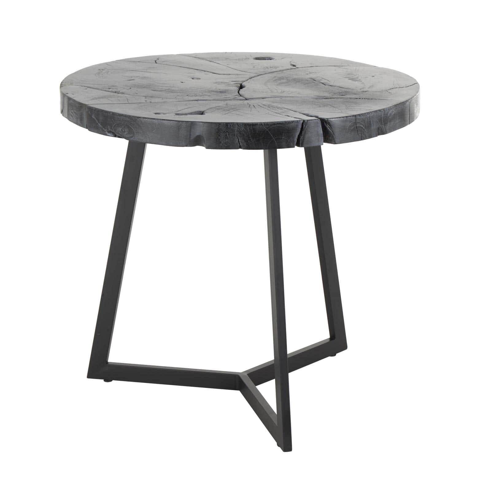 21.5" Black Teak Wood Handmade Live Edge Accent Table with Black Metal Base
