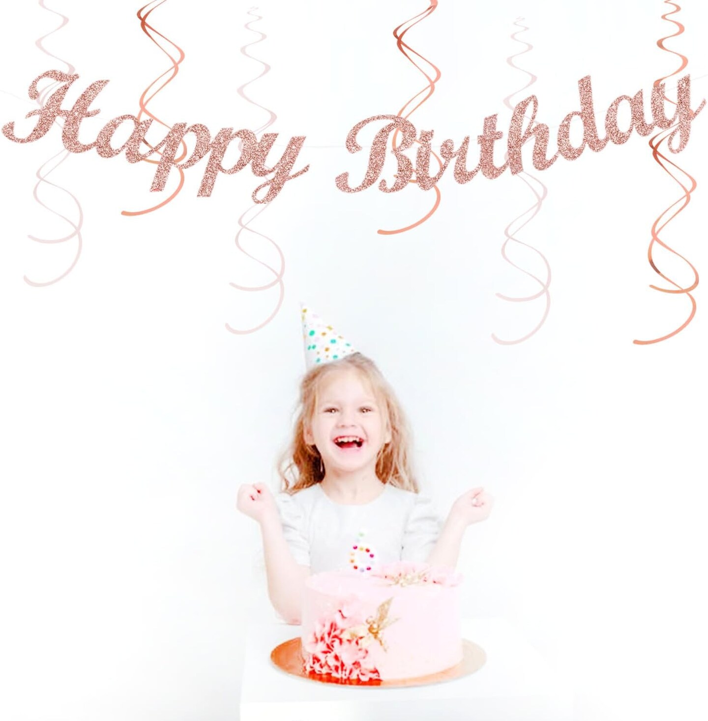 21-Piece Pink, White & Rose Gold Birthday Party Decoration Kit – Banner, Lanterns, Pom-Poms & Garland