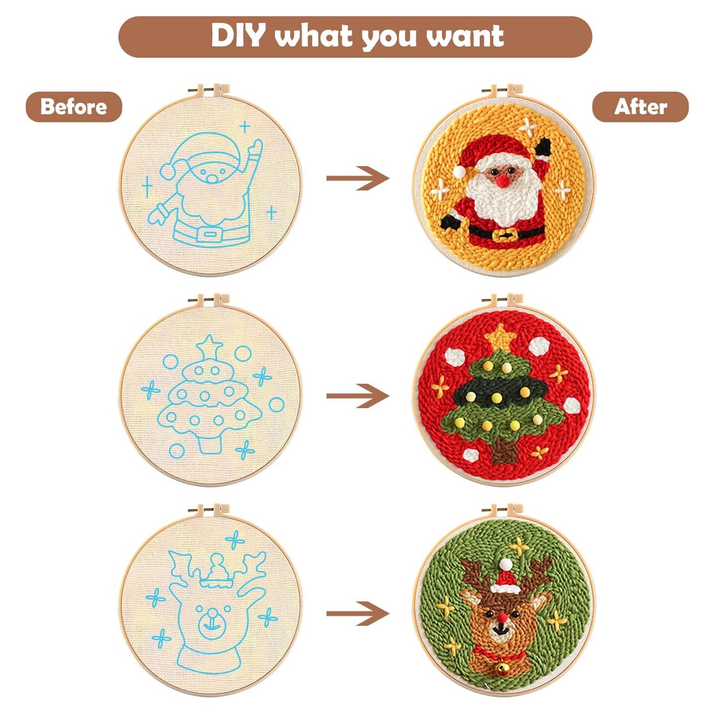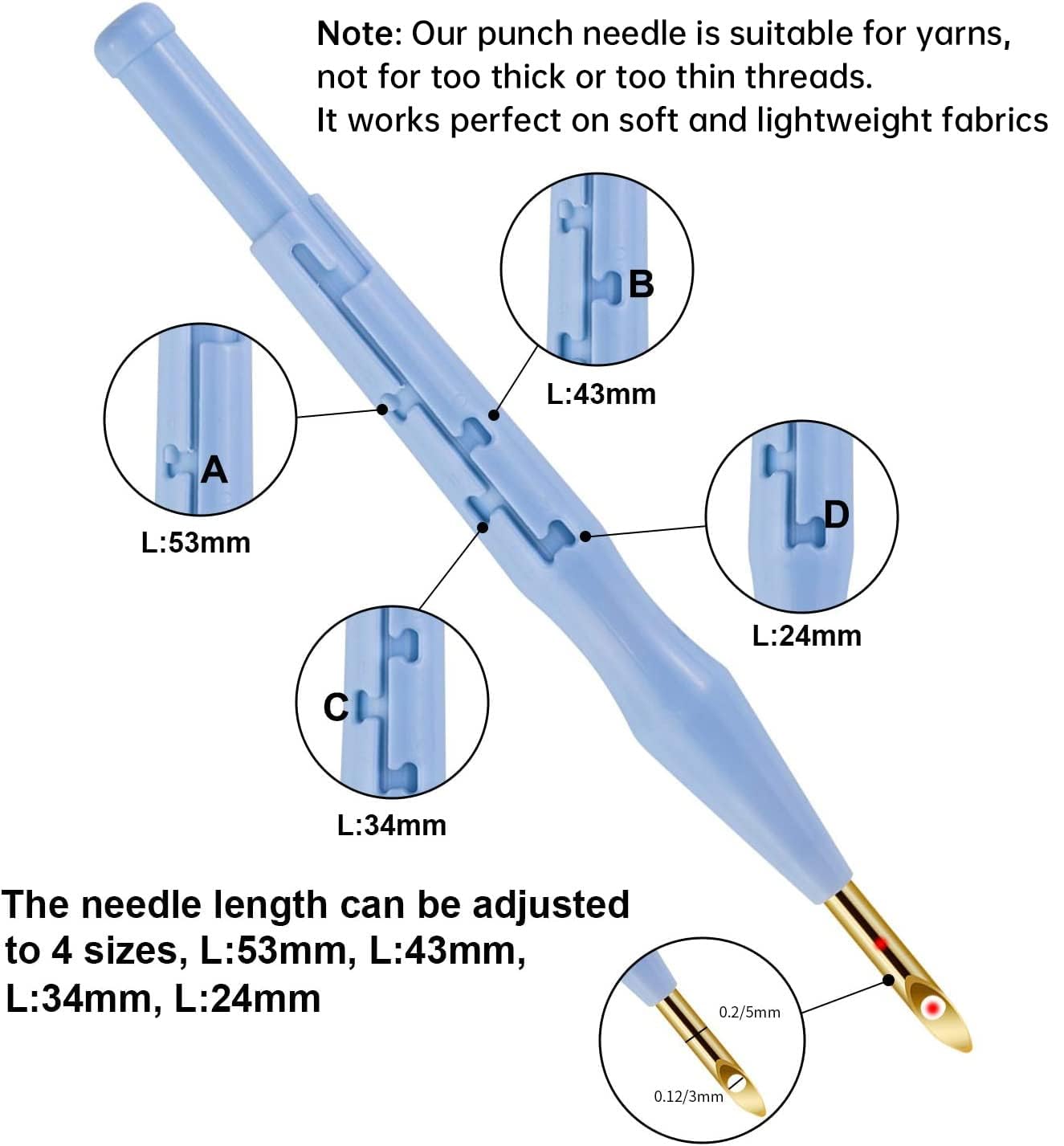 21-Piece Punch Needle Set, Adjustable Tool, Wooden Handle Embroidery Pens, Hoops, Cloth, Perfect for Adult Beginners & Gifts (Blue)