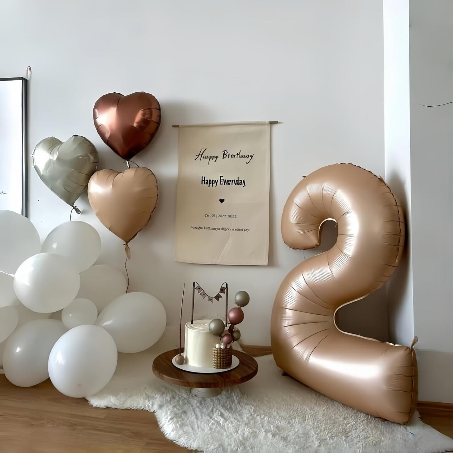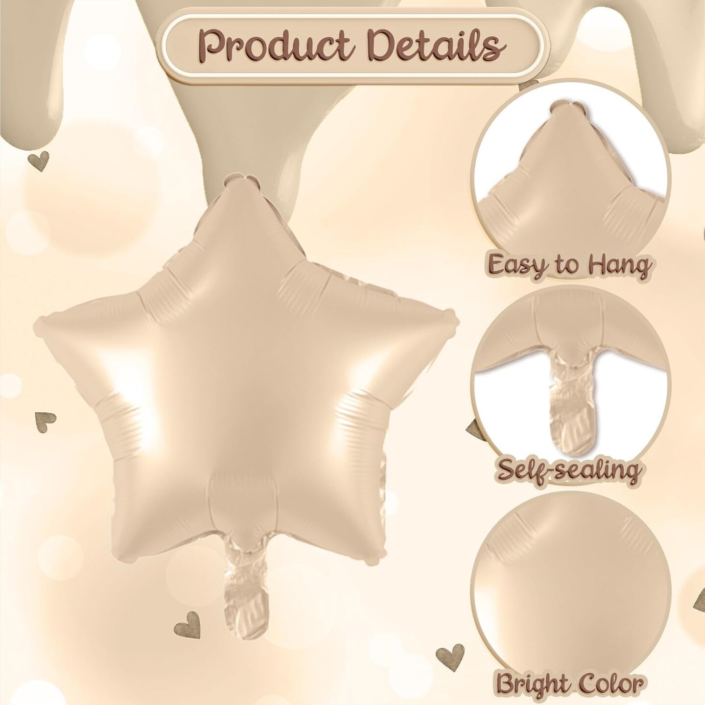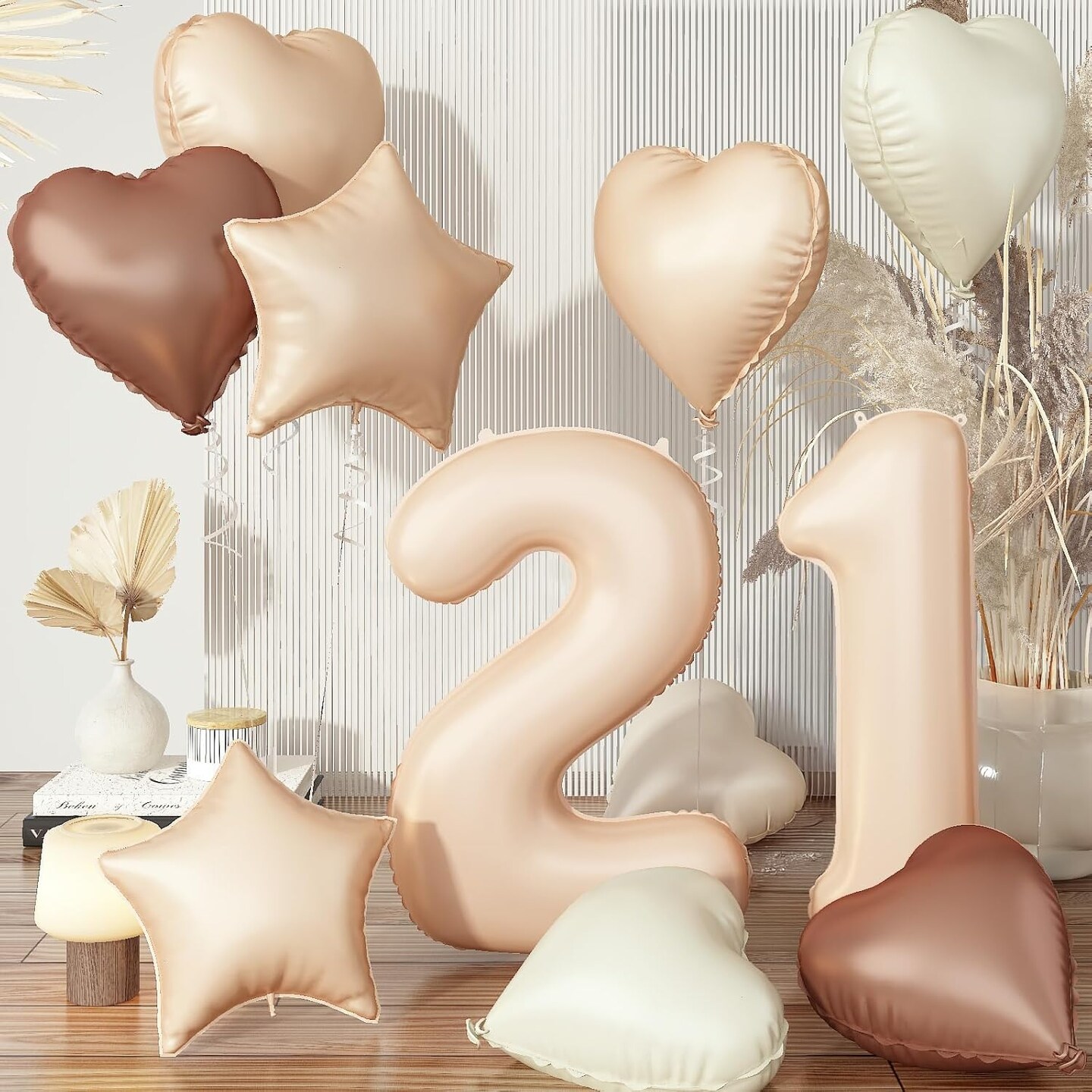 21st Birthday Balloon Set – 21 Beige, Nude, and Taupe Foil Balloons with Numbers, Hearts, Stars | Neutral Sand, Cream, White & Tan Party Decorations for Women, Men, Weddings & Anniversaries