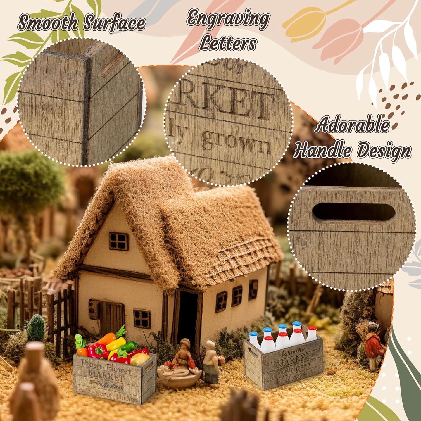 2.2 × 1.2 × 1.2 Inch Miniature Rustic Farmhouse Crate – 1:12 Scale Wooden Crate for Mini Farmhouse Scenes, Fairy Gardens, Tiered Tray Décor, and Shelf Display Accessories