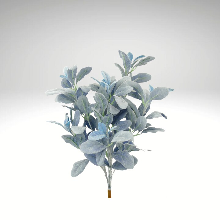 22" Artificial Blue Lamb’s Ear Bush – Soft Frosted Faux Greenery Stem