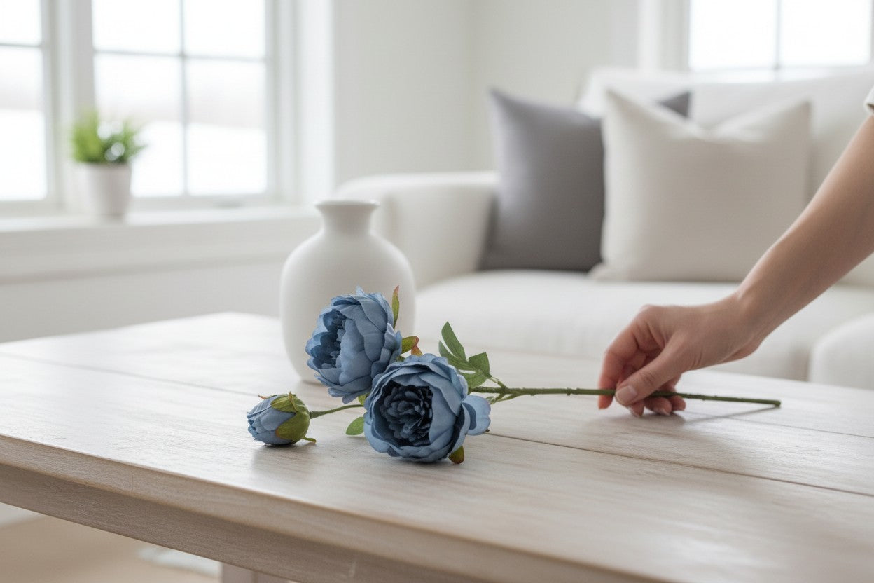 22" Artificial Smoke Blue Peony Spray - Floral Stem for Wreaths, Arrangements, & Decor -FS376044