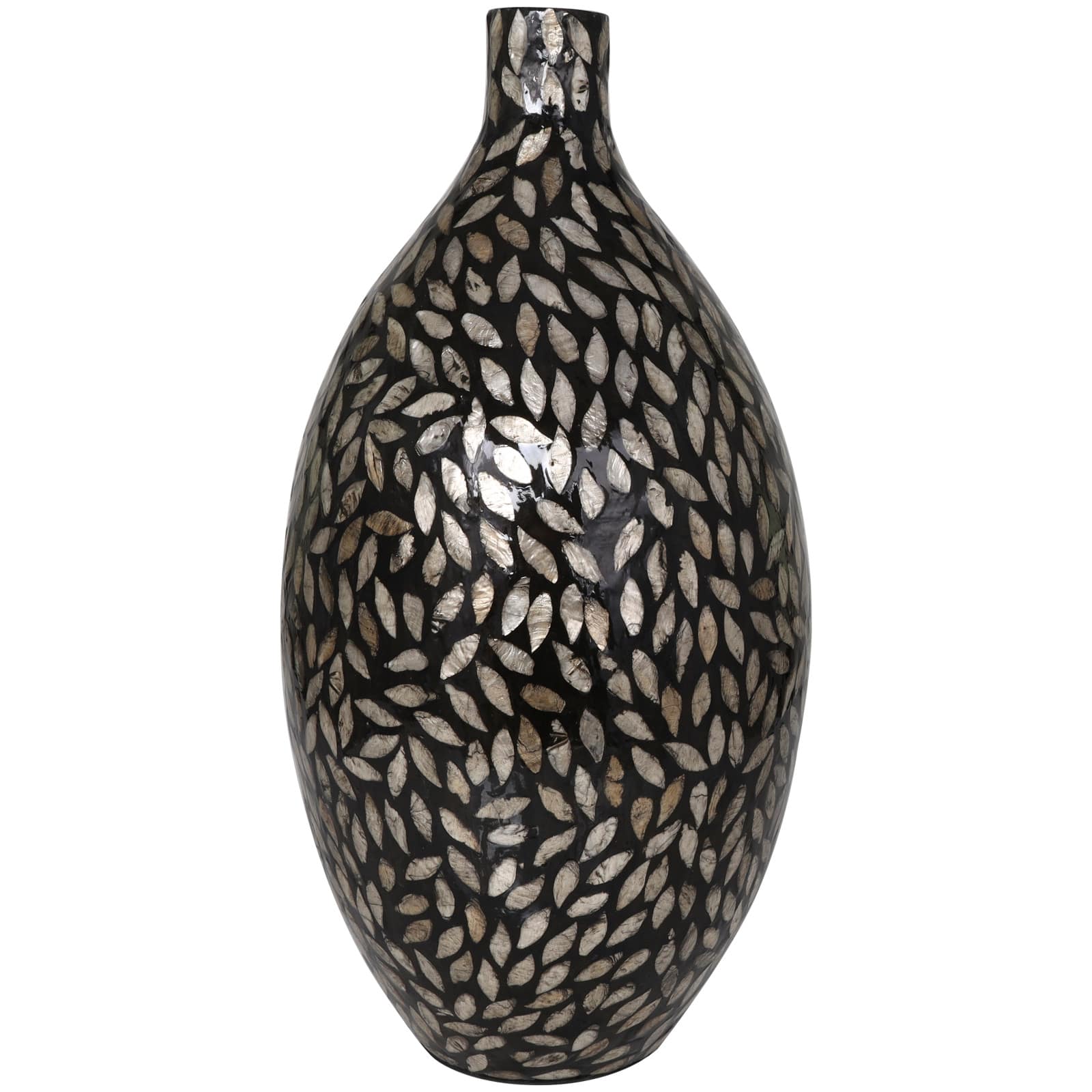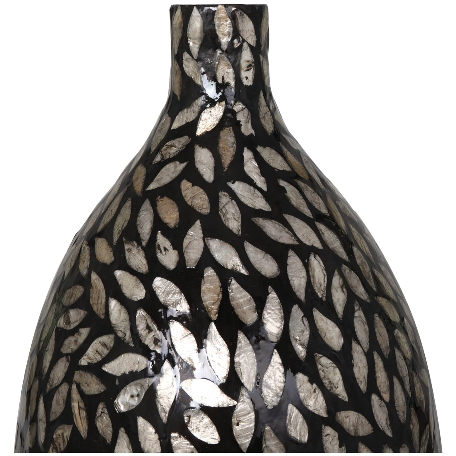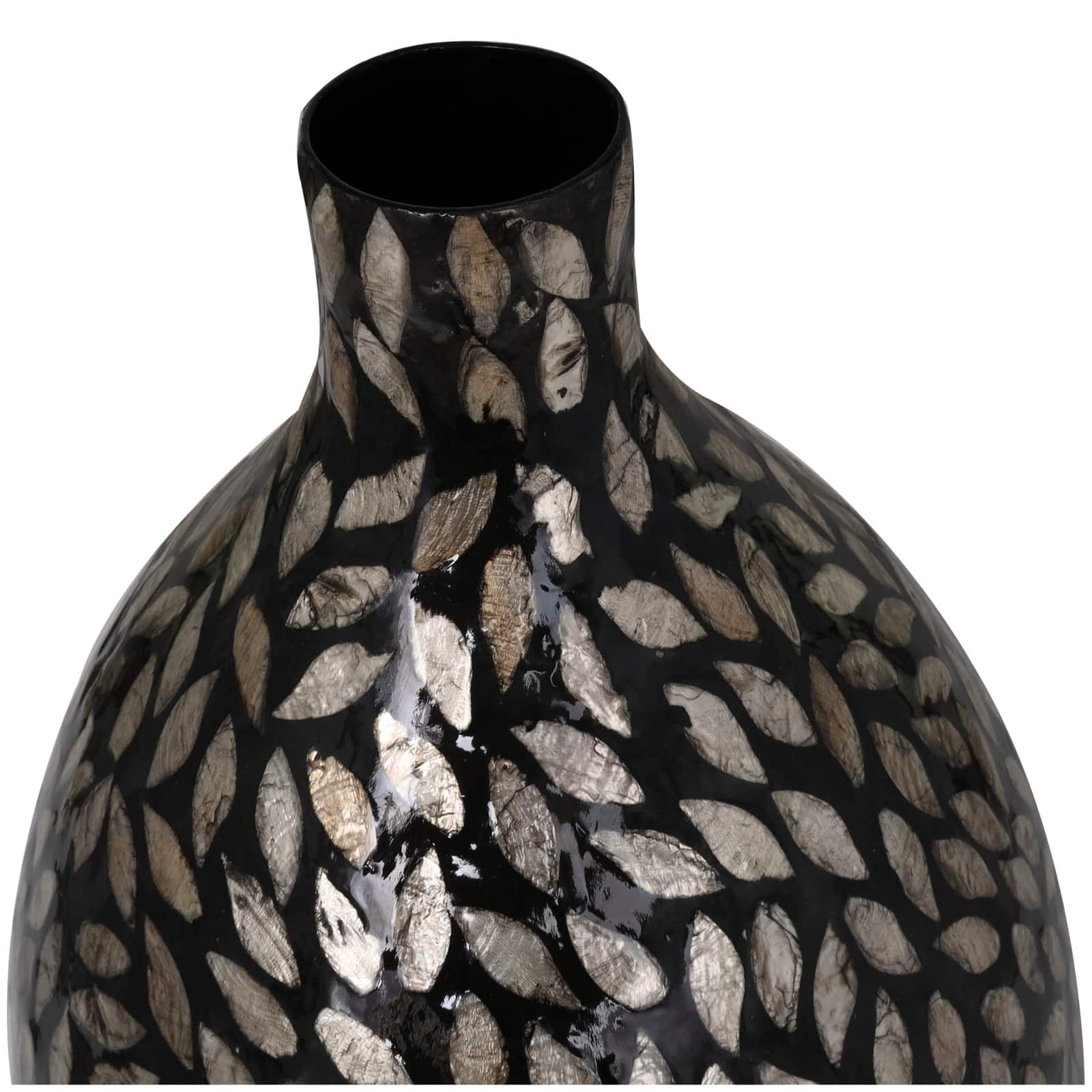 22" Black Mother of Pearl Handmade Mosaic Floral Inspired Vase