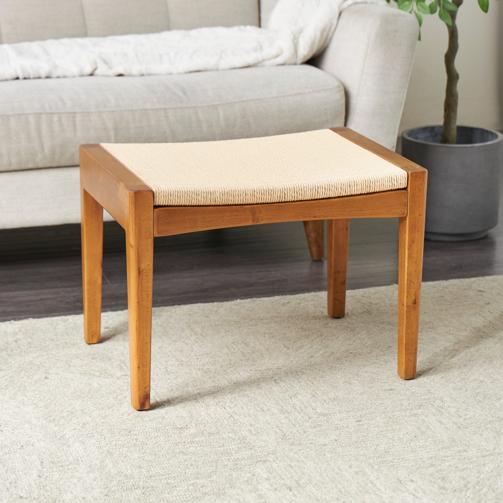 22" Brown Traditional Living Room Stool with Rope Wrapped Seat