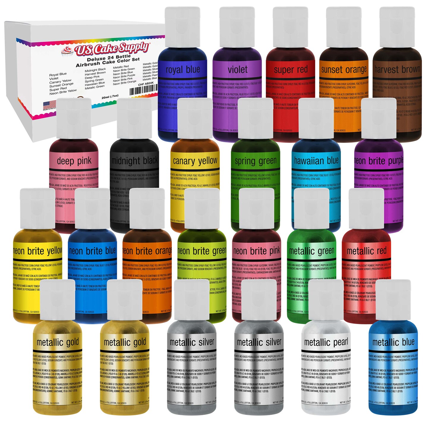 22 Color / 24 Bottle Deluxe Airbrush Cake Color Kit