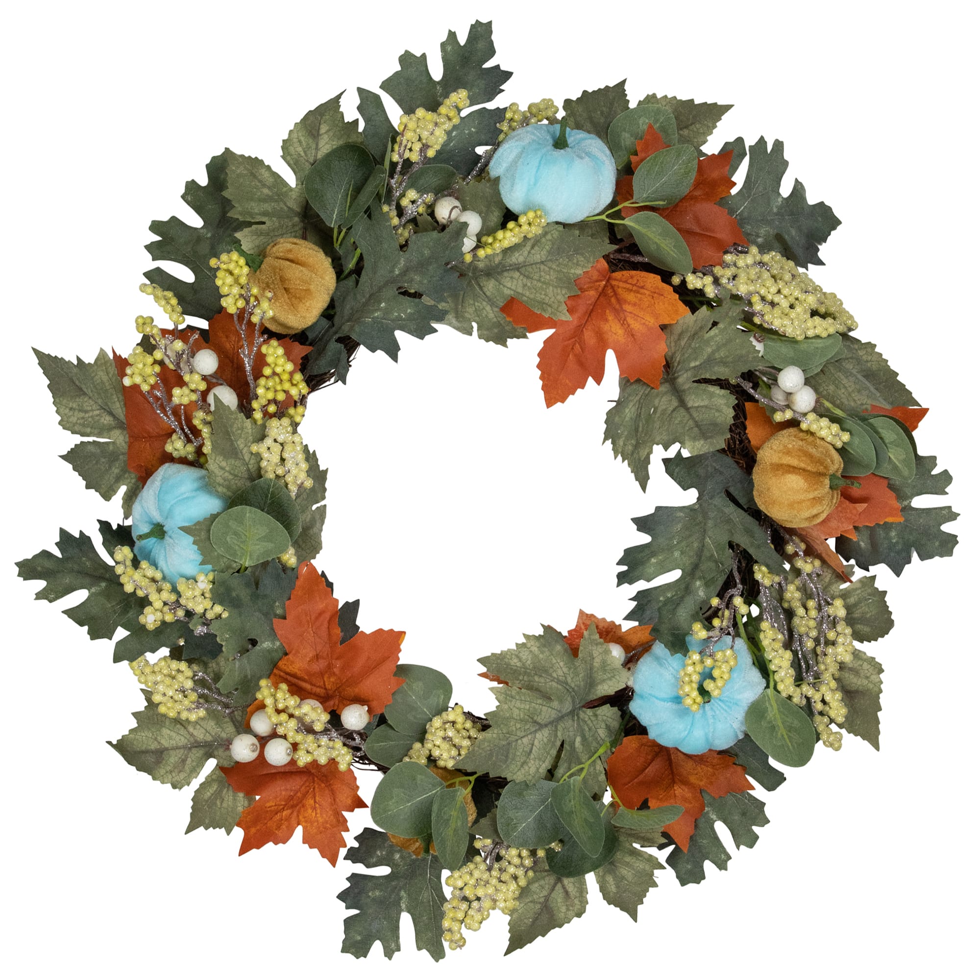 22" Green & Orange Foliage & Gourds Thanksgiving Artificial Wreath