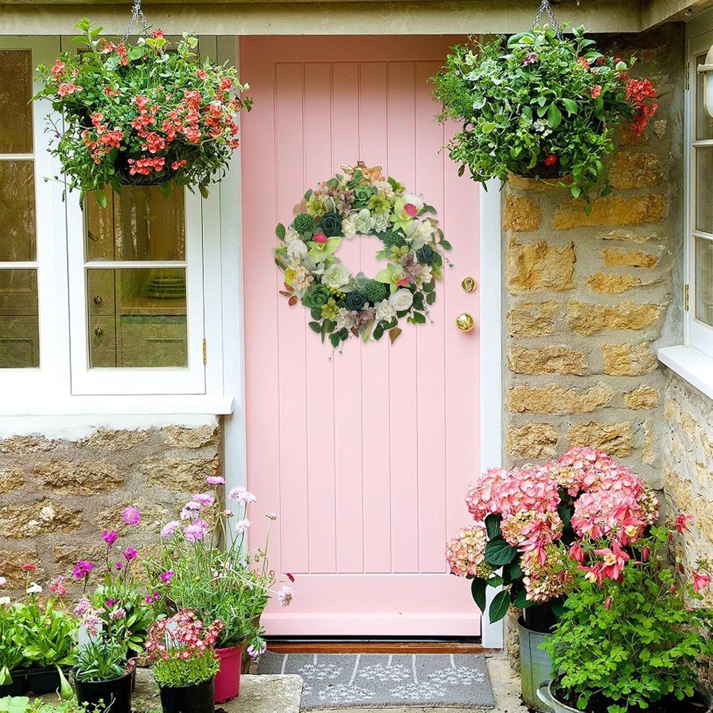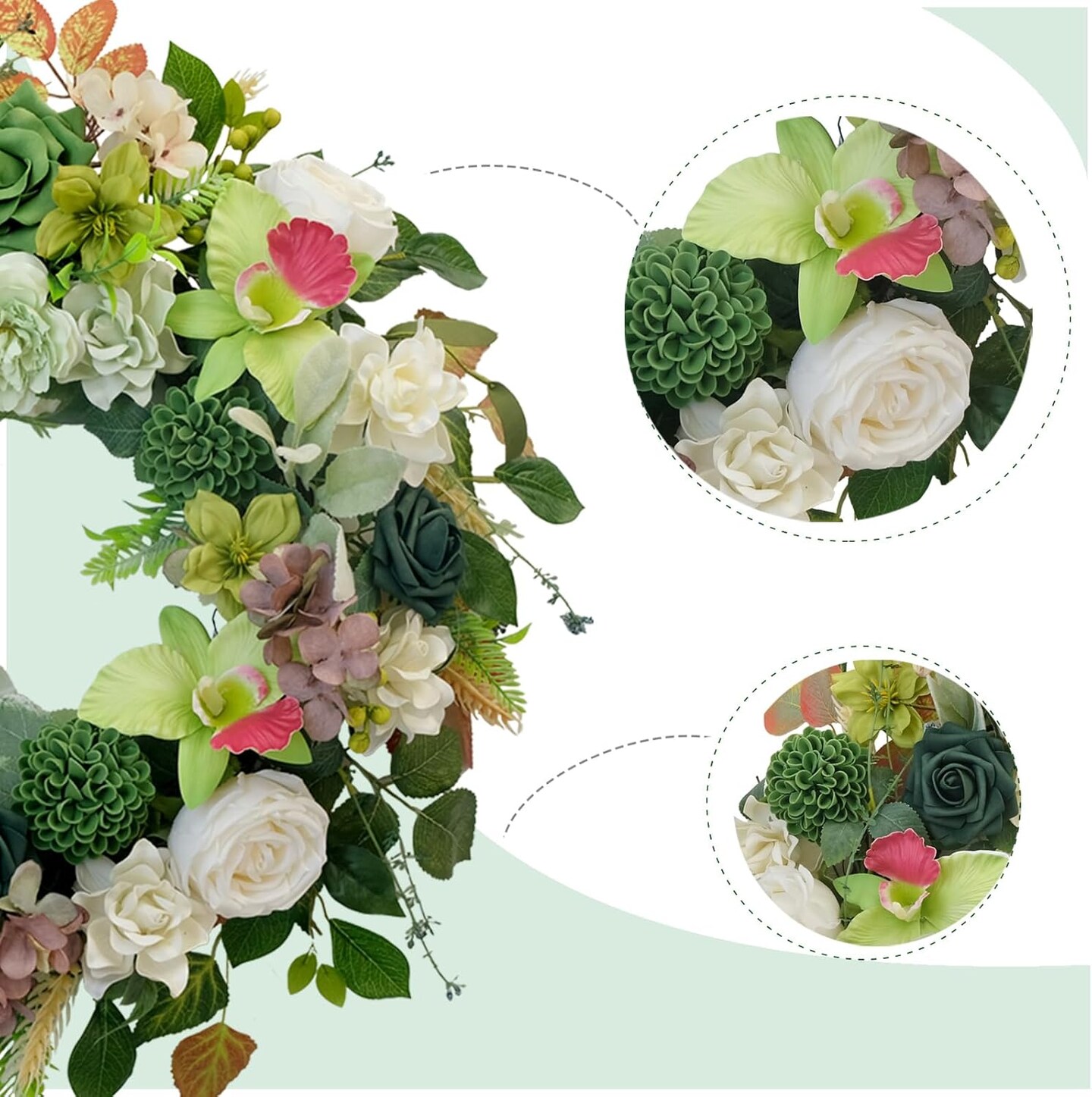 22 Inch Green Orchid Spring Everyday Wreath for Front Door, Indoor Outdoor, Rustic Farmhouse Style, Artificial Flowers and Foliage