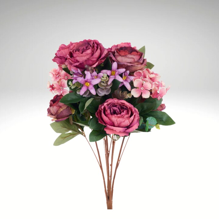 22" Mauve & Dusty Pink Artificial Cabbage Rose Bush – 5 Bloom Fabric Floral Stem-FB195430