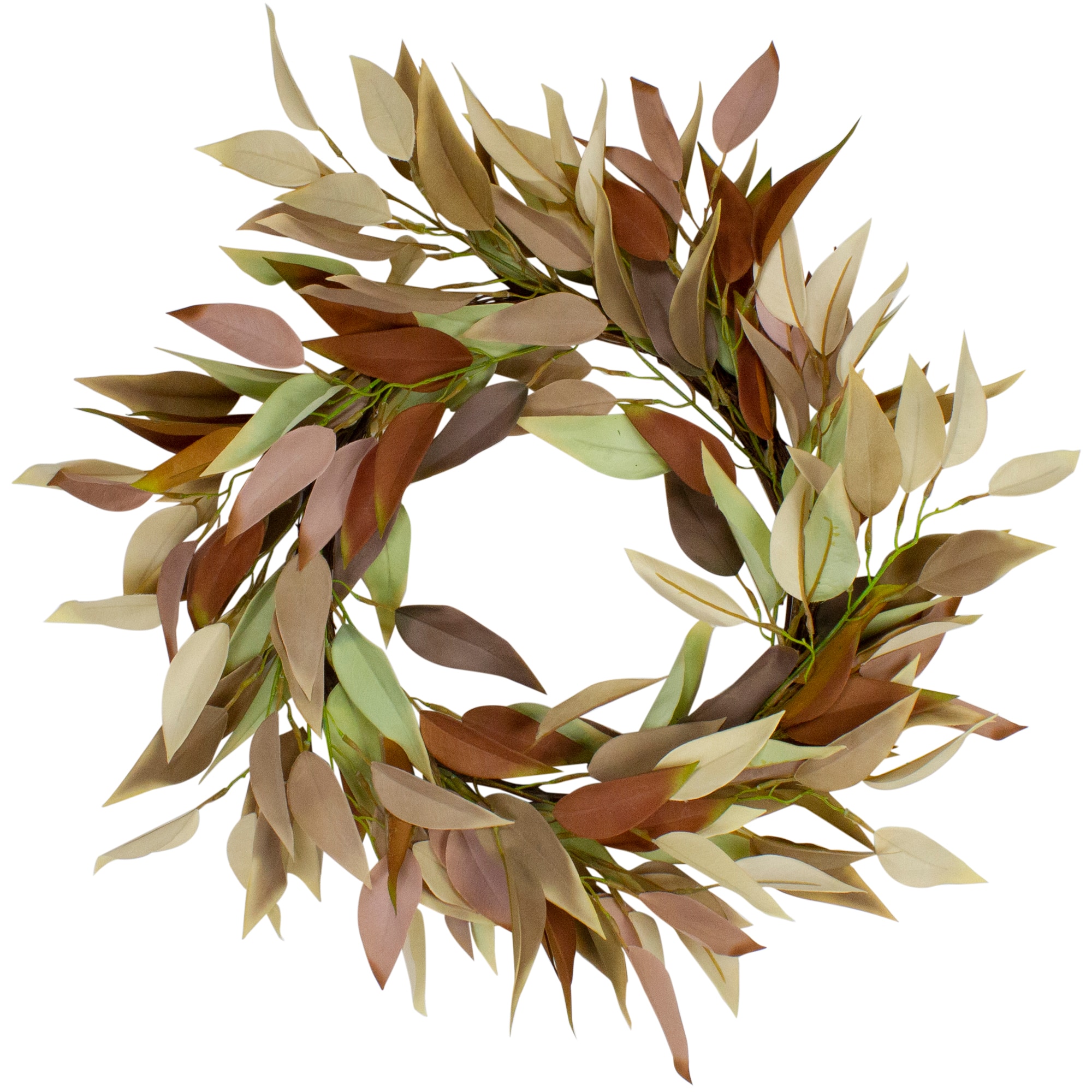 22" Neutral Fall Colored Leaves Autumn Harvest Wreath