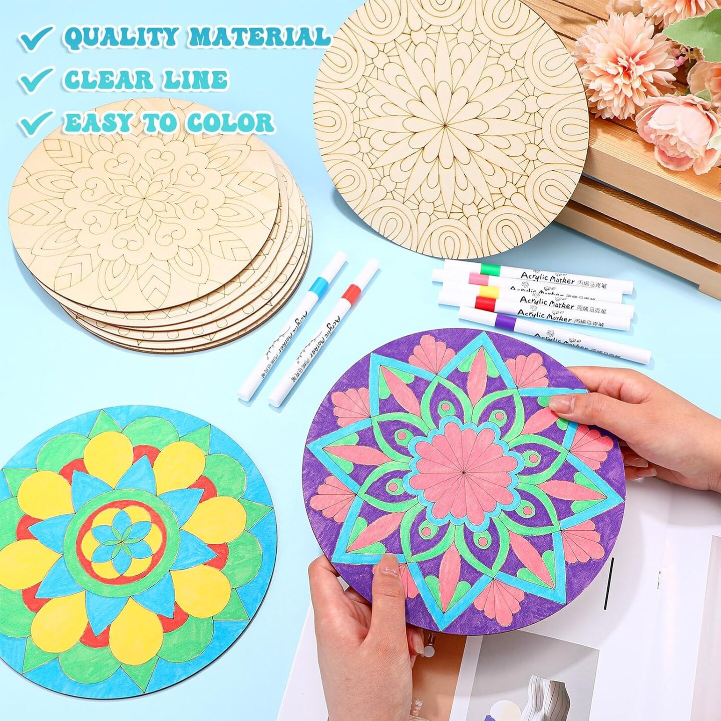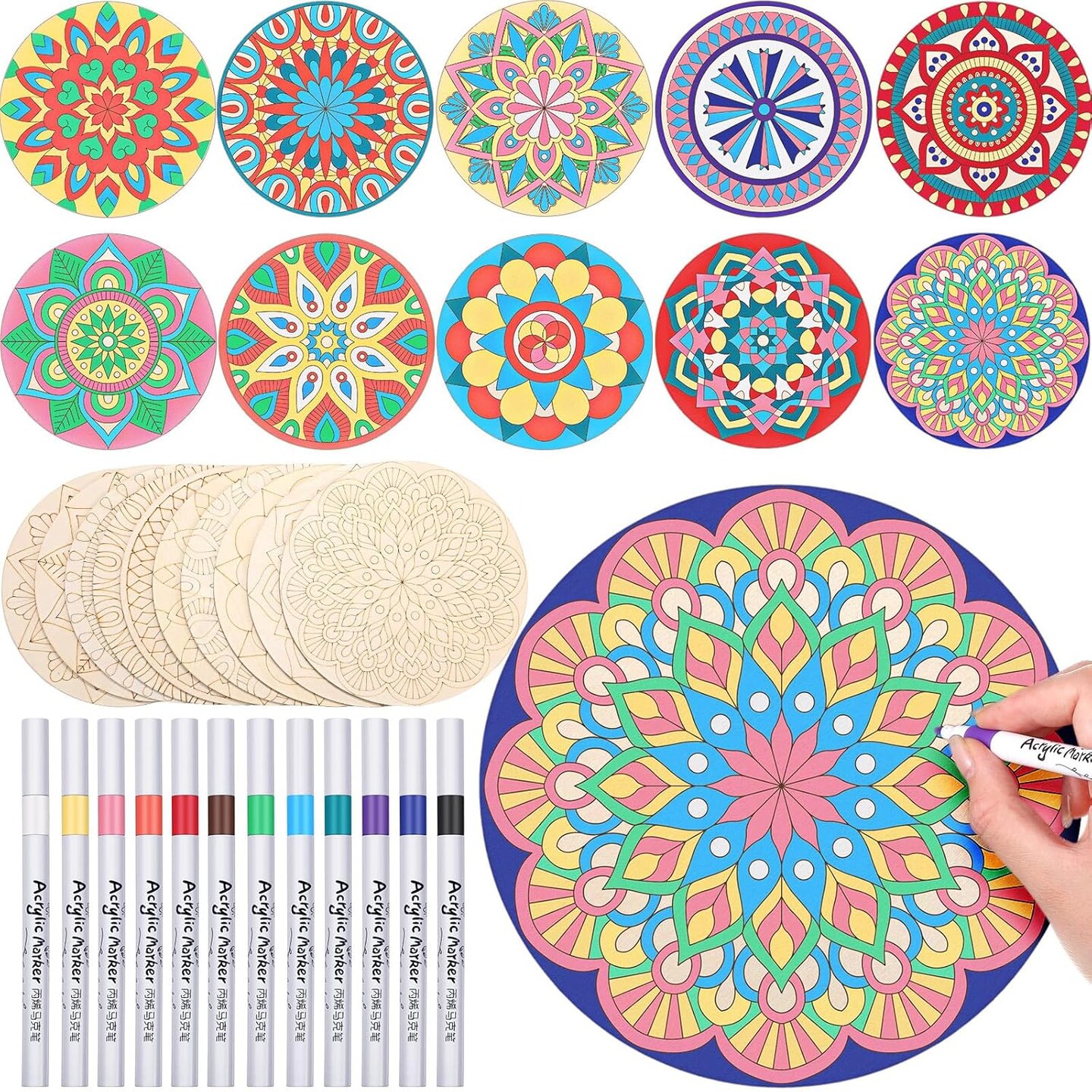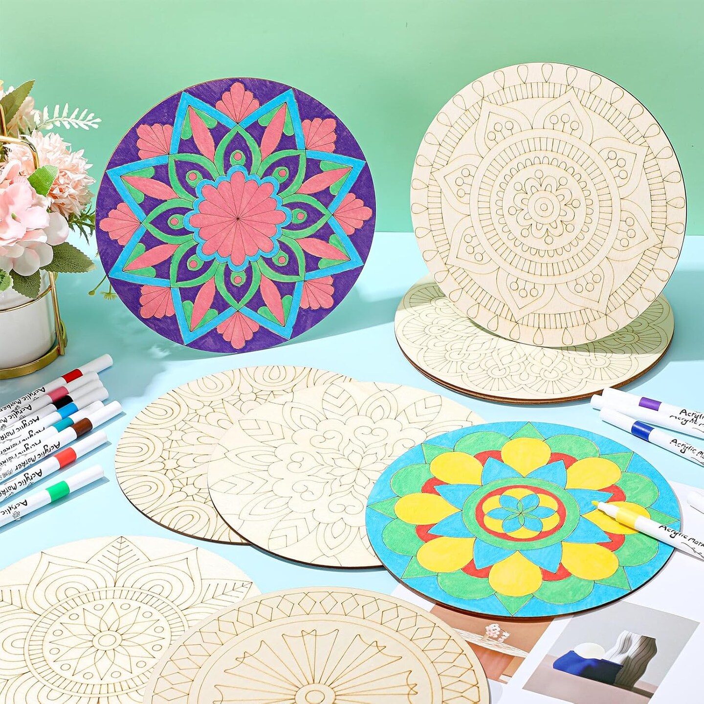 22 Pcs Wooden Mandala Painting Set