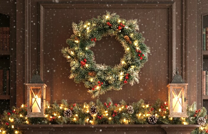 22" Pre-Lit Decorated Real Touch Christmas Wreath | Pinecones & Berries Included | Use Included Lights | Indoor/Outdoor Use | Holiday & Christmas Décor | Perfect for Front Door, Wreaths, & Garlands