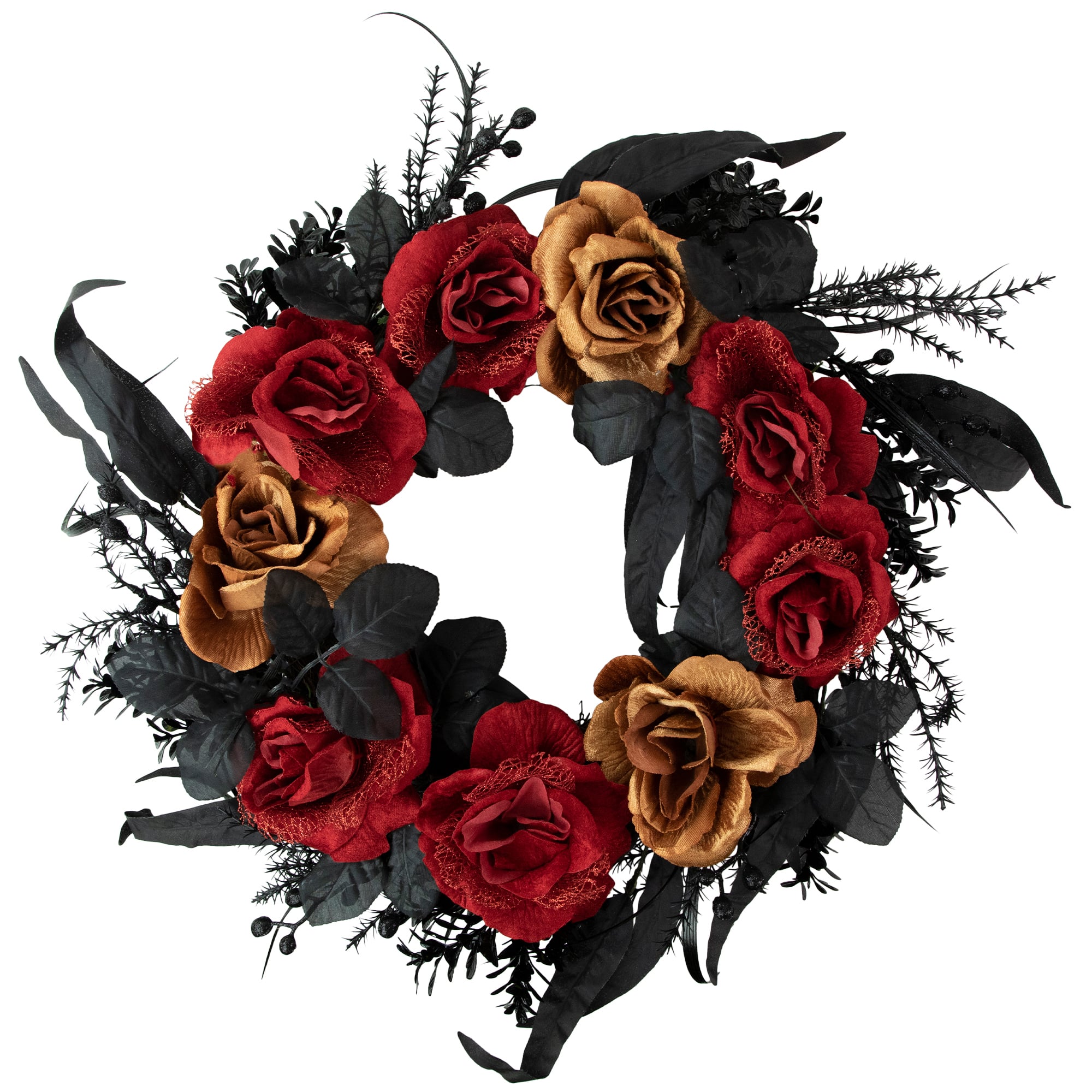 22" Red & Gold Roses with Black Foliage Halloween Wreath