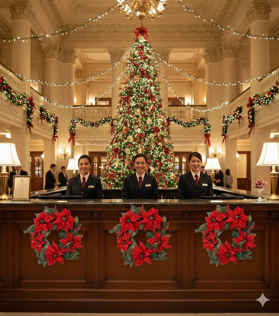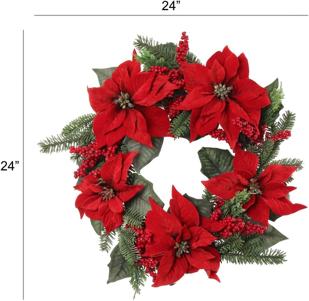 22" Red Velvet Poinsettia Christmas Wreath with Silk Flowers & Berries, Elegant Holiday Door Decor - 2024 Christmas Collection, Floral Home by Artificial Flowers