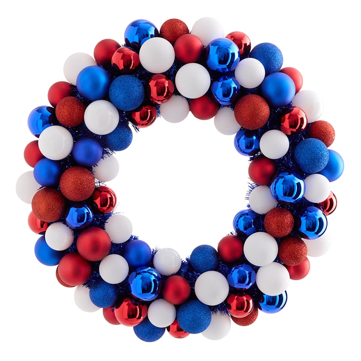 22" Red, White & Blue Ornament Wreath – Patriotic Door Decor