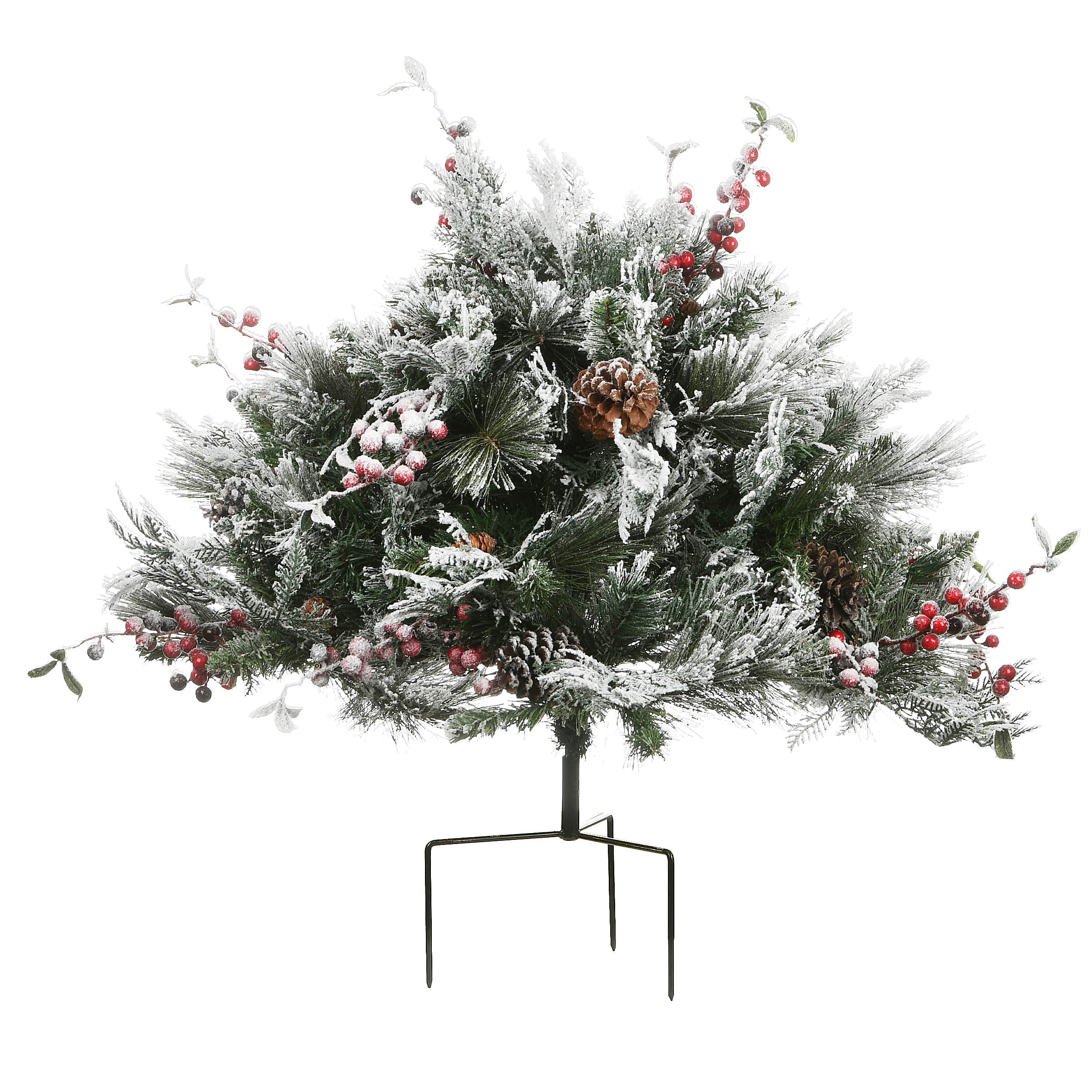 22" Snowy Bedford Urn Filler with Battery Operated LED Lights