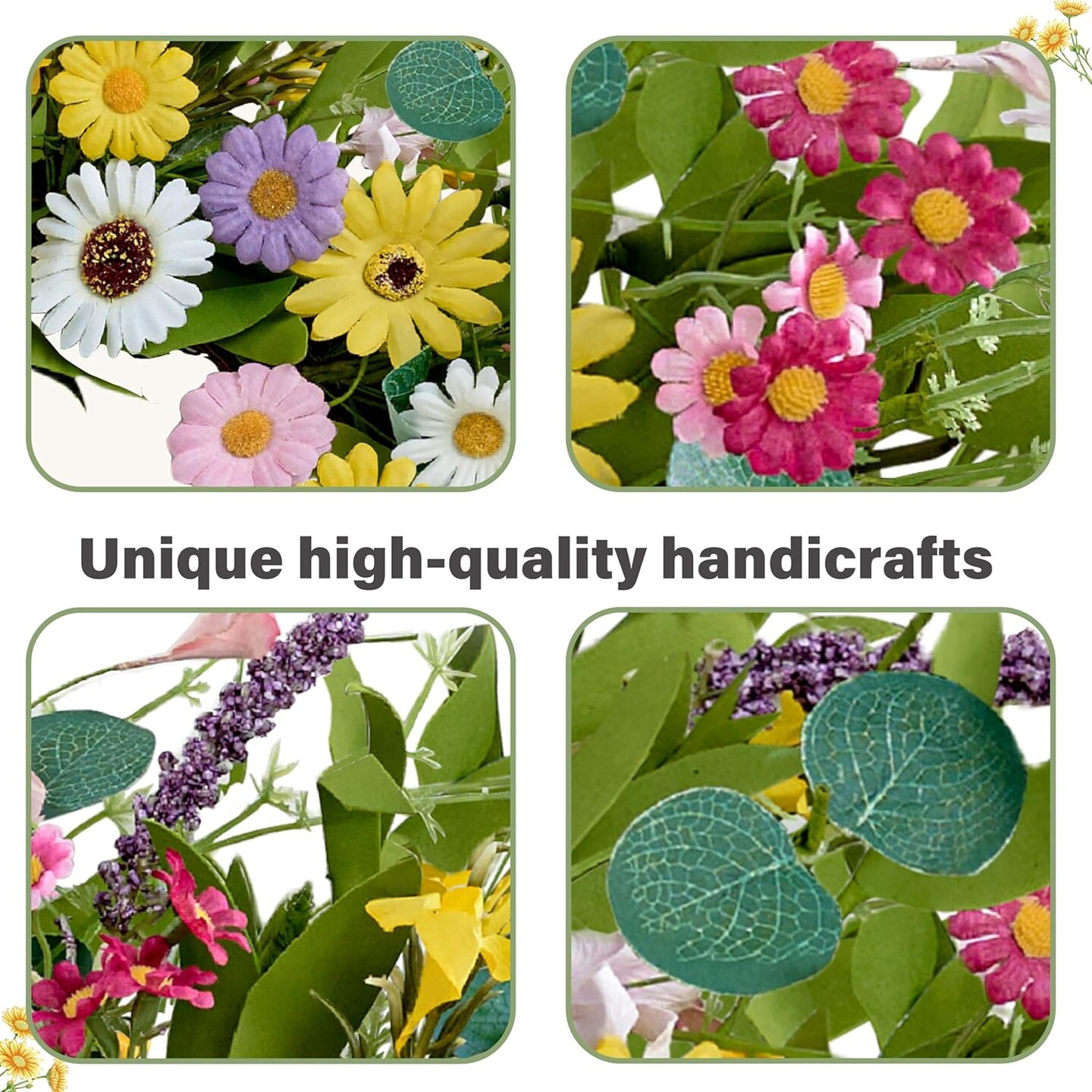 22" Spring & Summer Wreath – Artificial Yellow Daisy, Lavender & Eucalyptus Front Door Wreath for Farmhouse, Porch, Wall, Home, Easter & Seasonal Décor