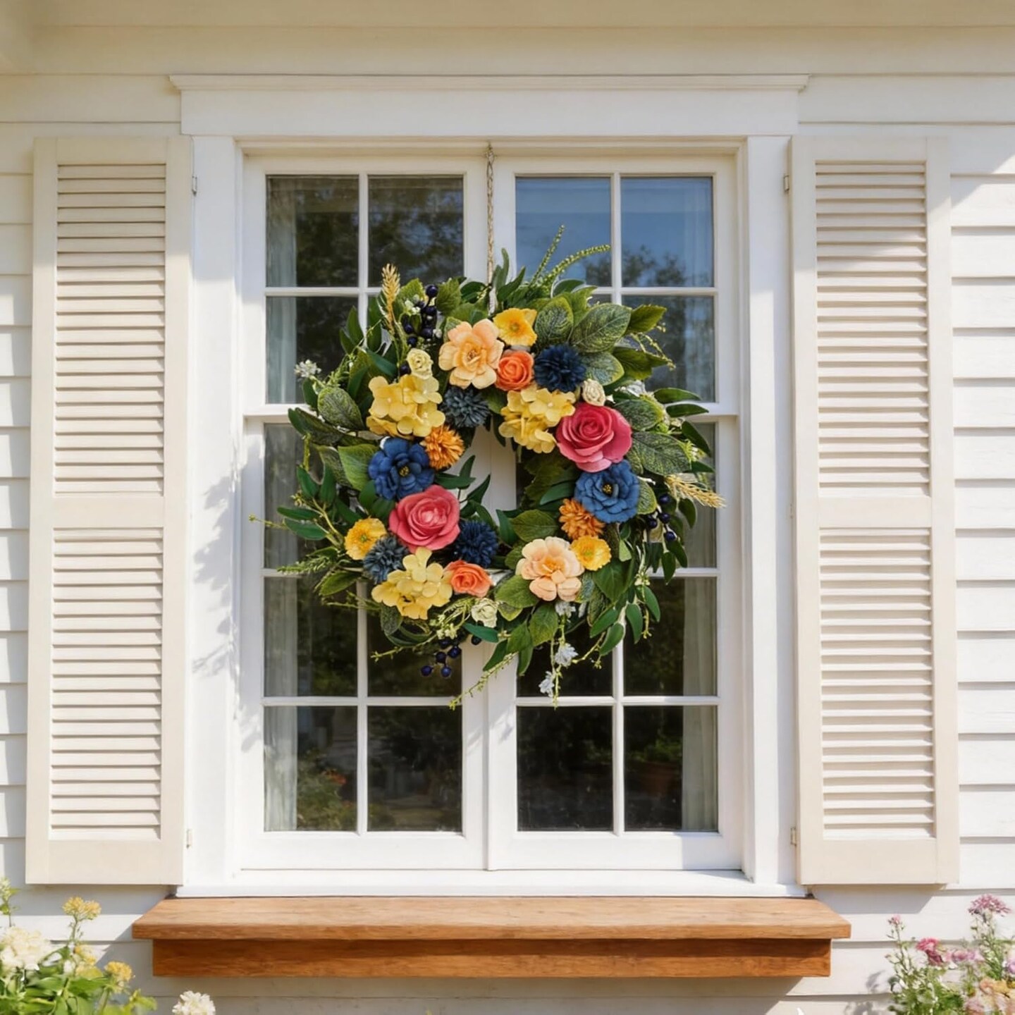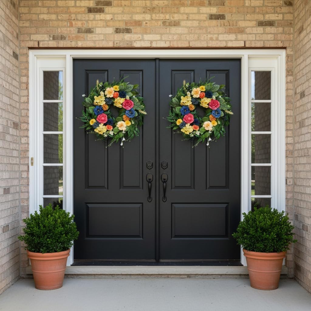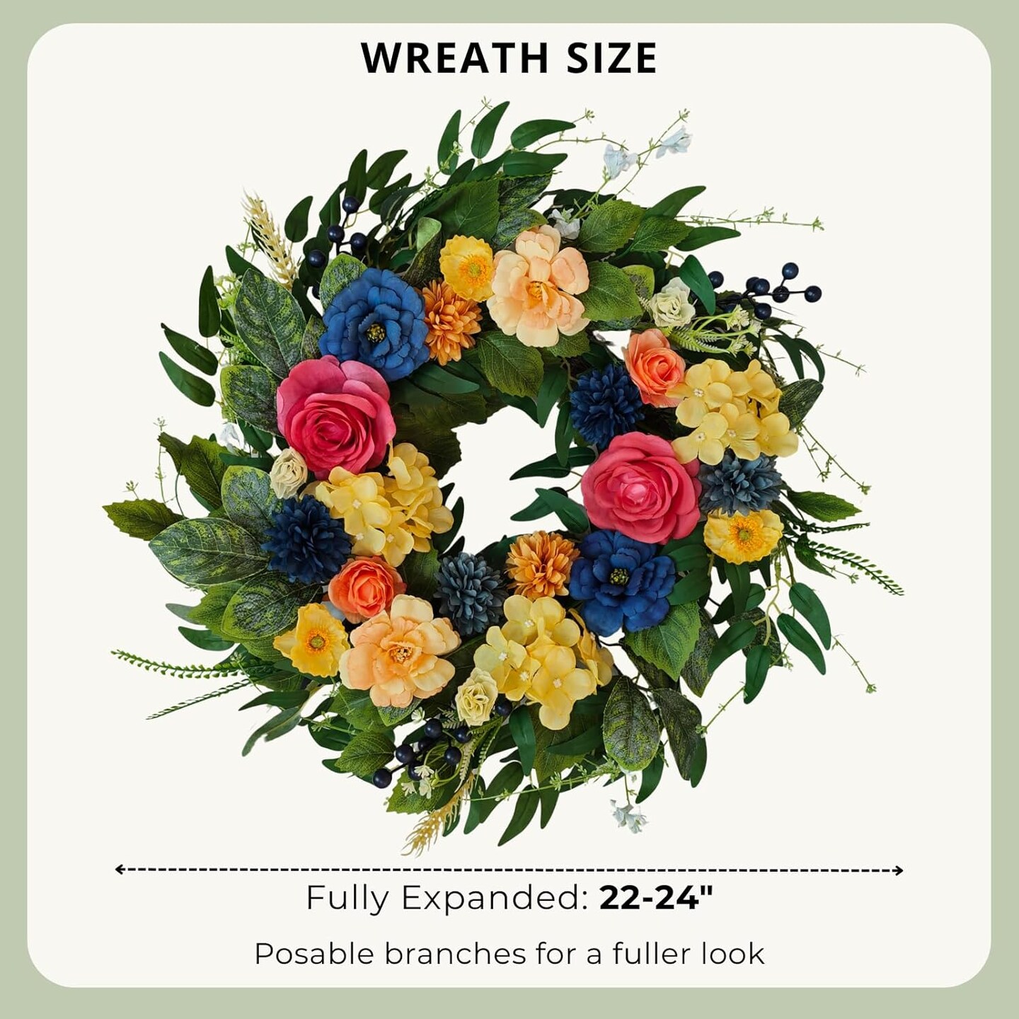 22–24 Inch Spring Wreath for Front Door – Handmade Floral Wreath with Hydrangea, Peony, Rose & Eucalyptus Greenery for Indoor Outdoor Home Decor