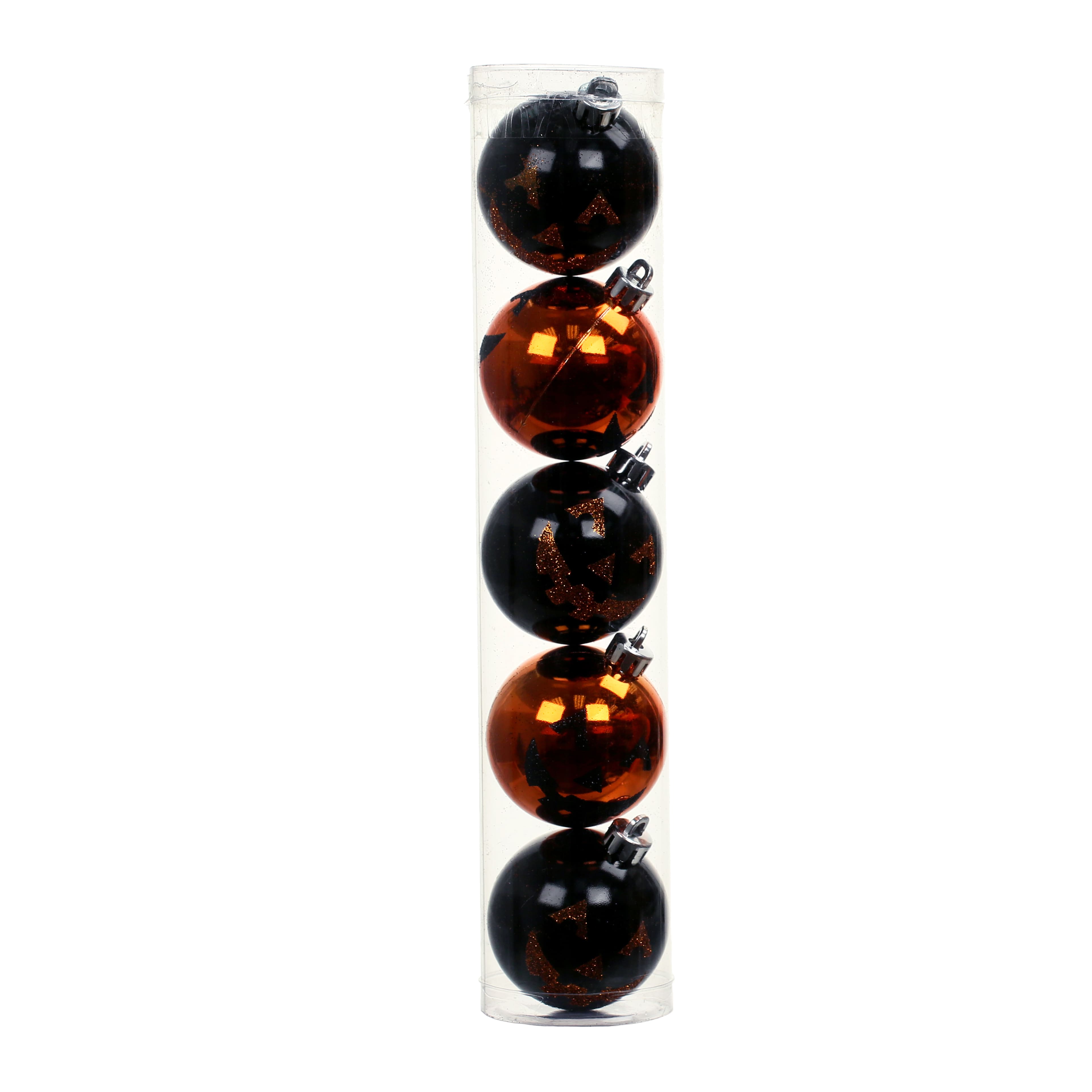 2.25" Black & Orange Pumpkin Face Plastic Ball Ornaments, 5ct. by Ashland®