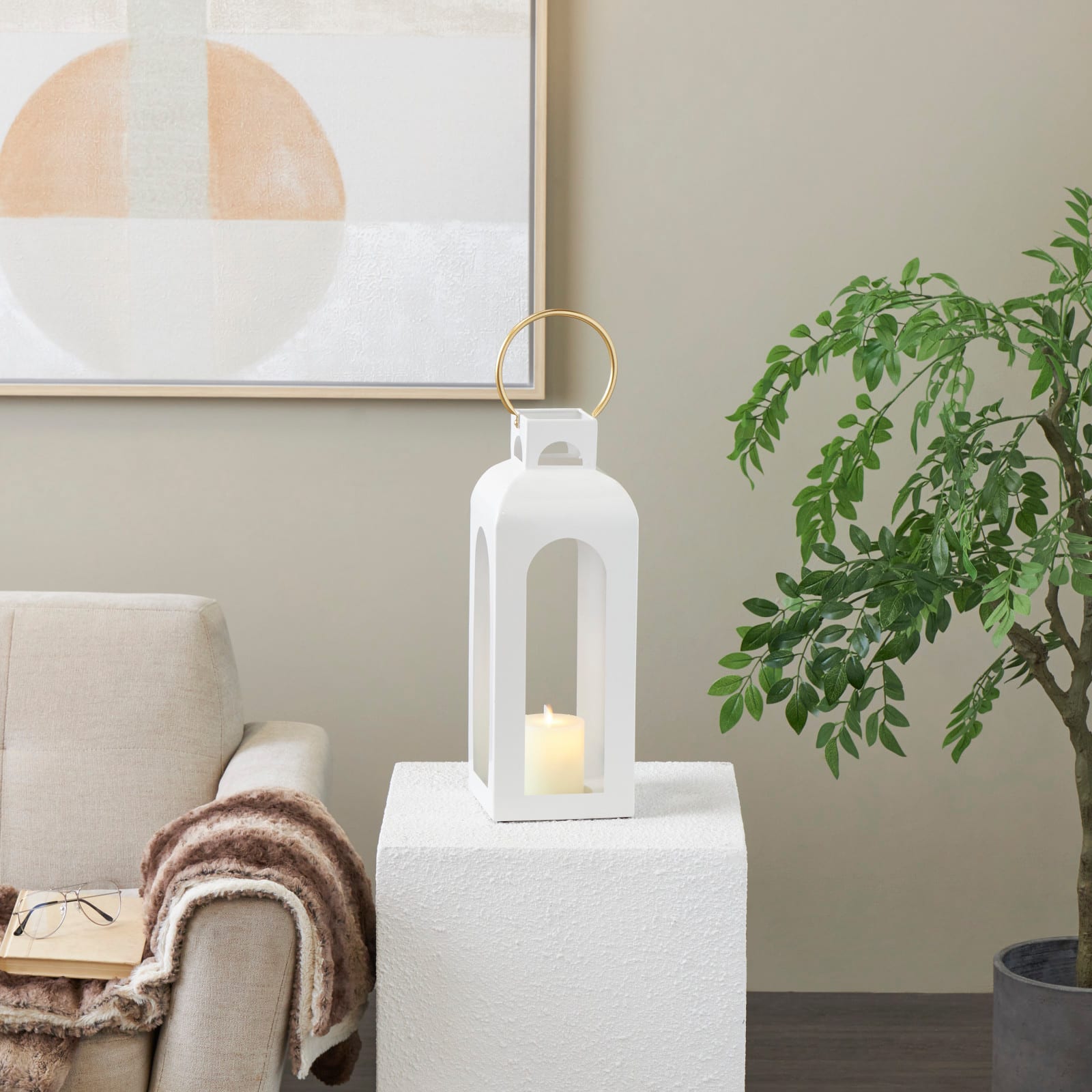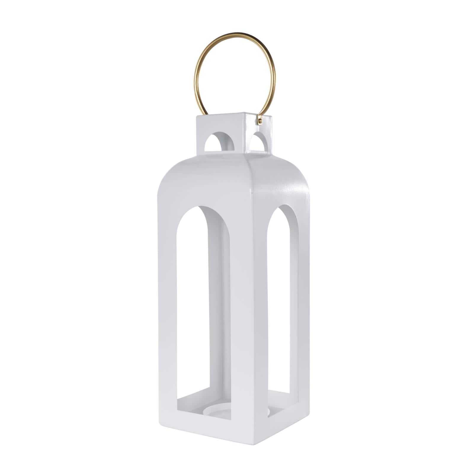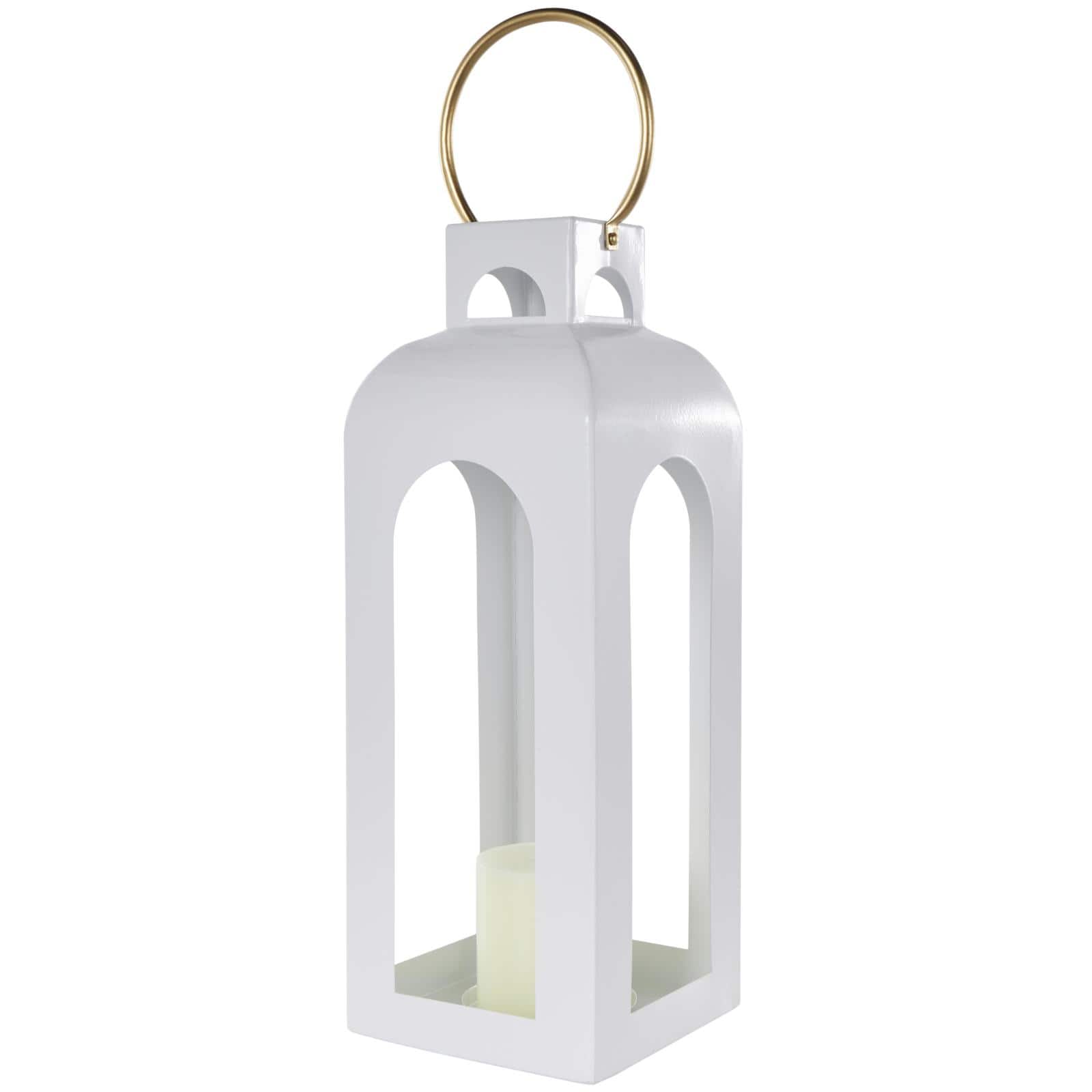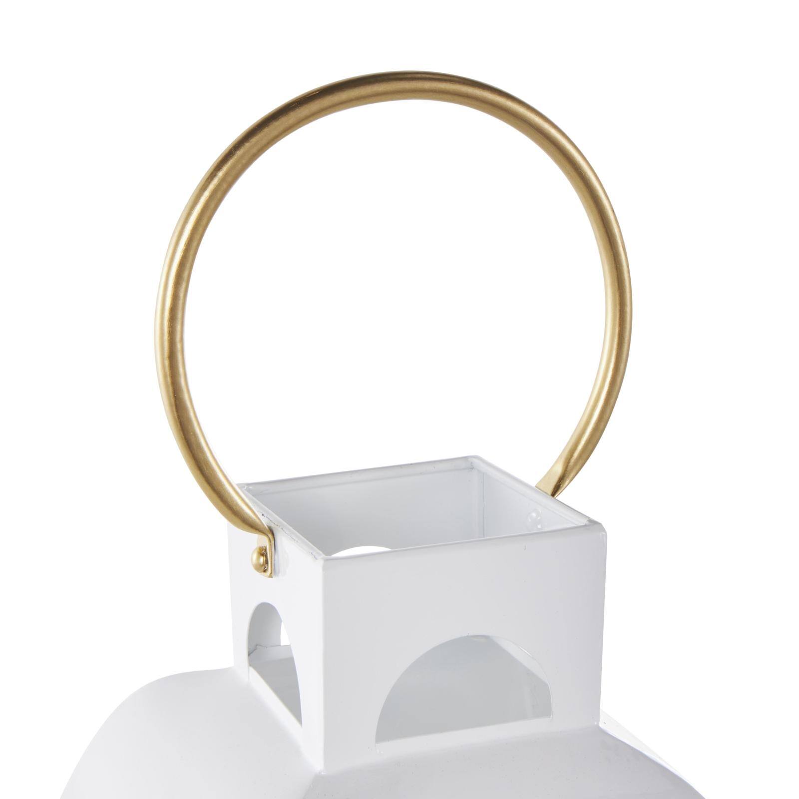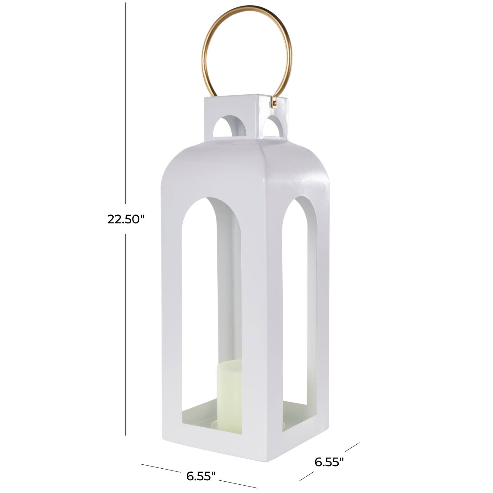 22.5" White Metal Tall Arched Cutout Candle Lantern with Gold Handle