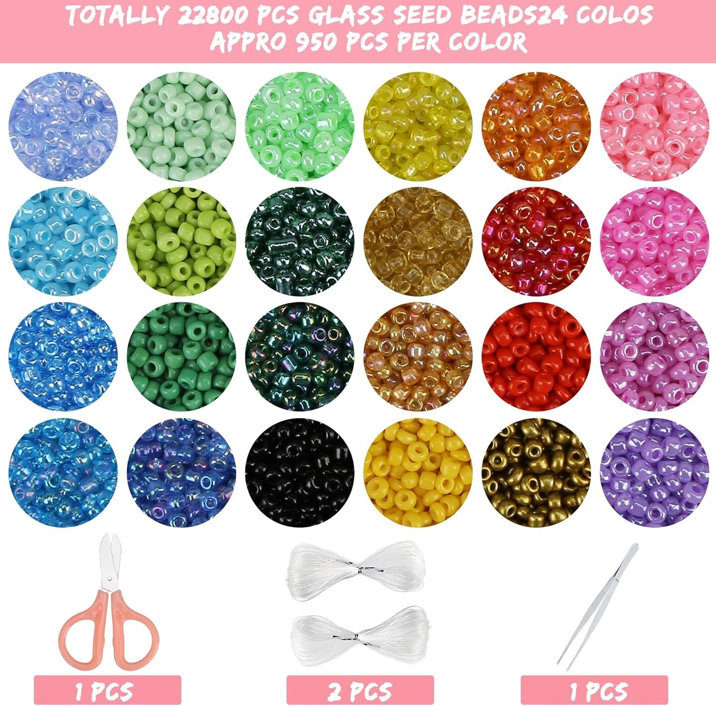 22800pcs Glass Seed Beads – 11/0 Small Beads Kit (24 Colors)