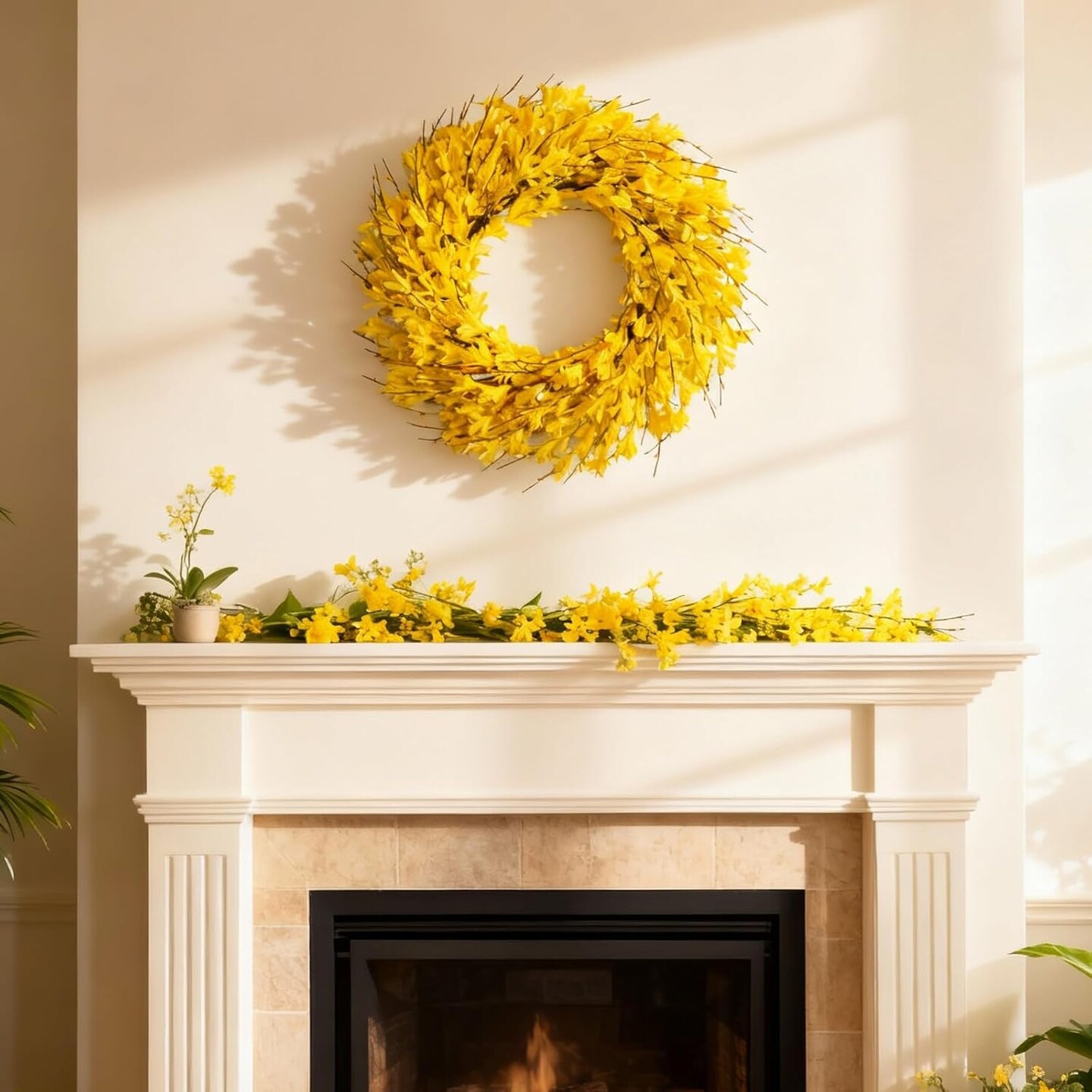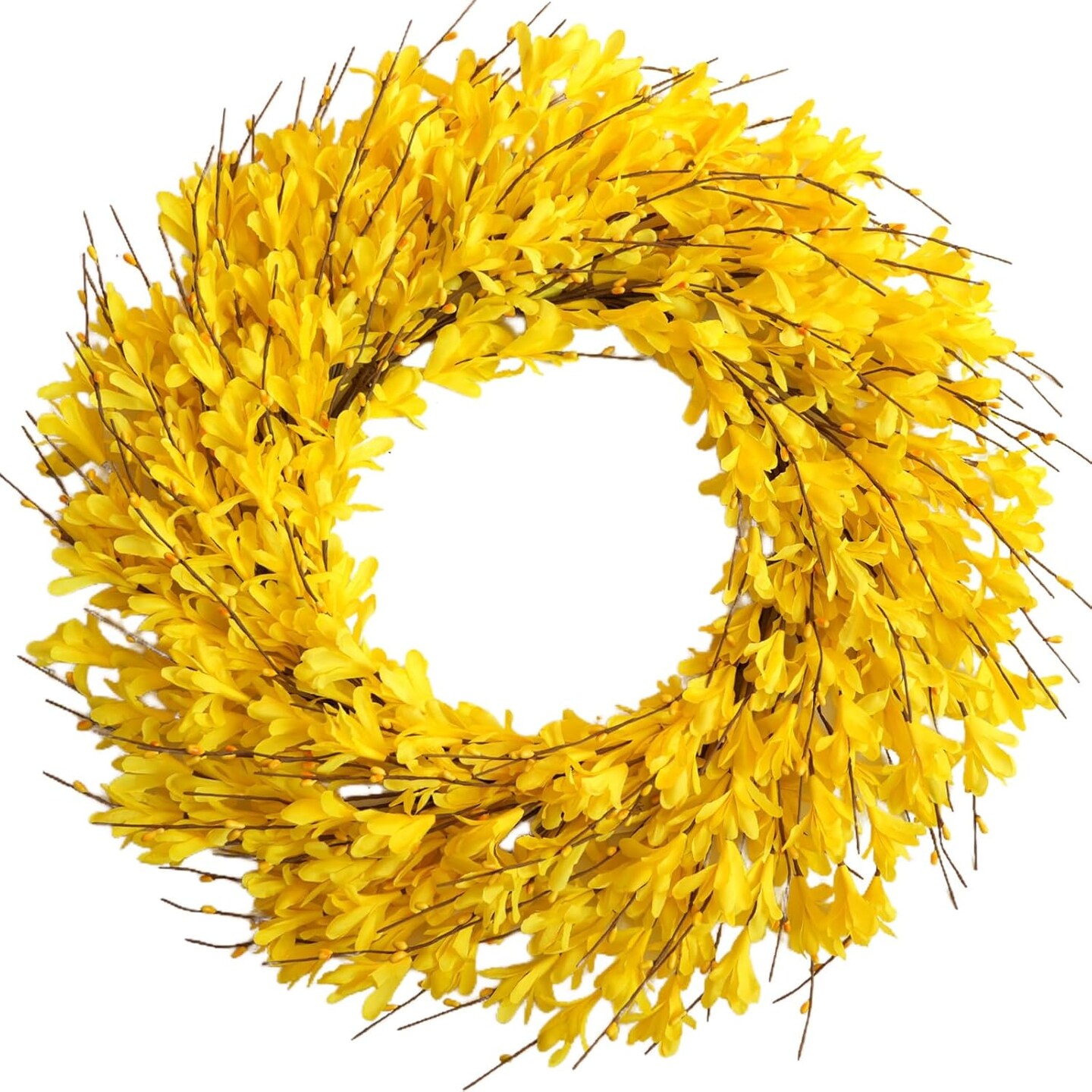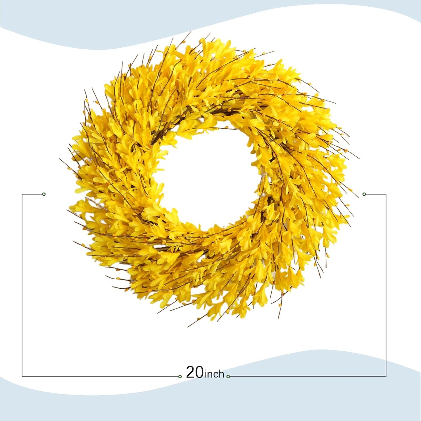 22inch Artificial Forsythia Flower Wreaths Spring Summer Fall Wreath Silk Leaves Wreath for Front Door Wreaths Porch Farmhouse Patio Garden Home Decor (yellow)