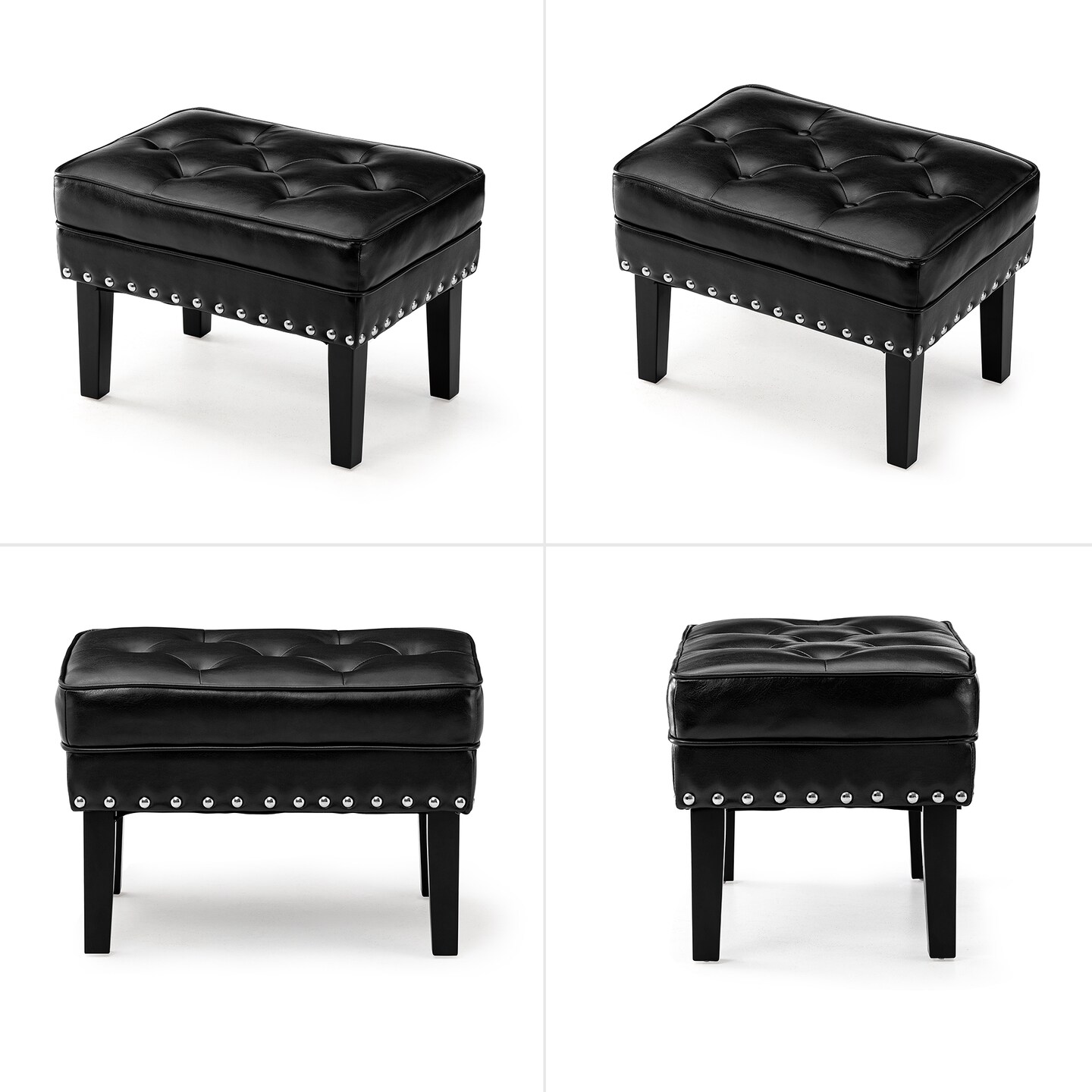 22"W Mid-century PU Leather Tufted Ottoman Foot Stool