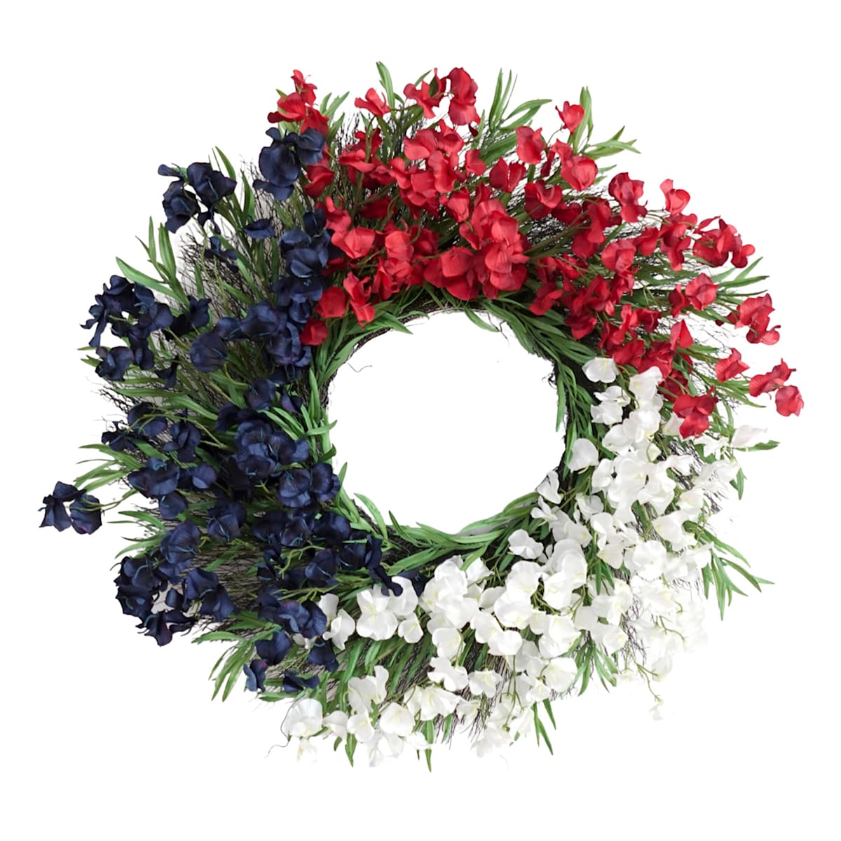 23" Blue Sweet Pea Floral Wreath – Spring/Summer Decor