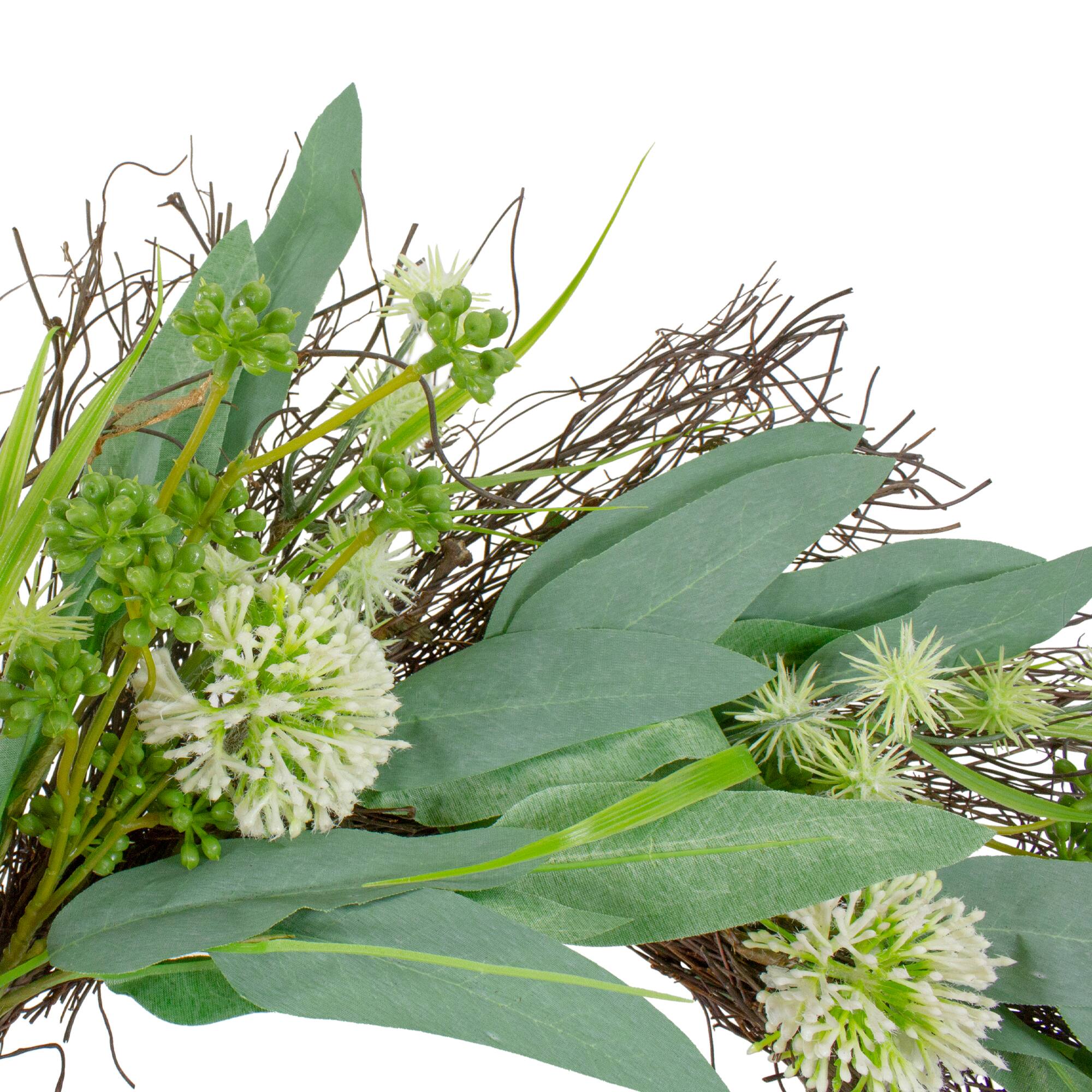 23" Green & White Olive Leaf & Floral Twig Spring Wreath