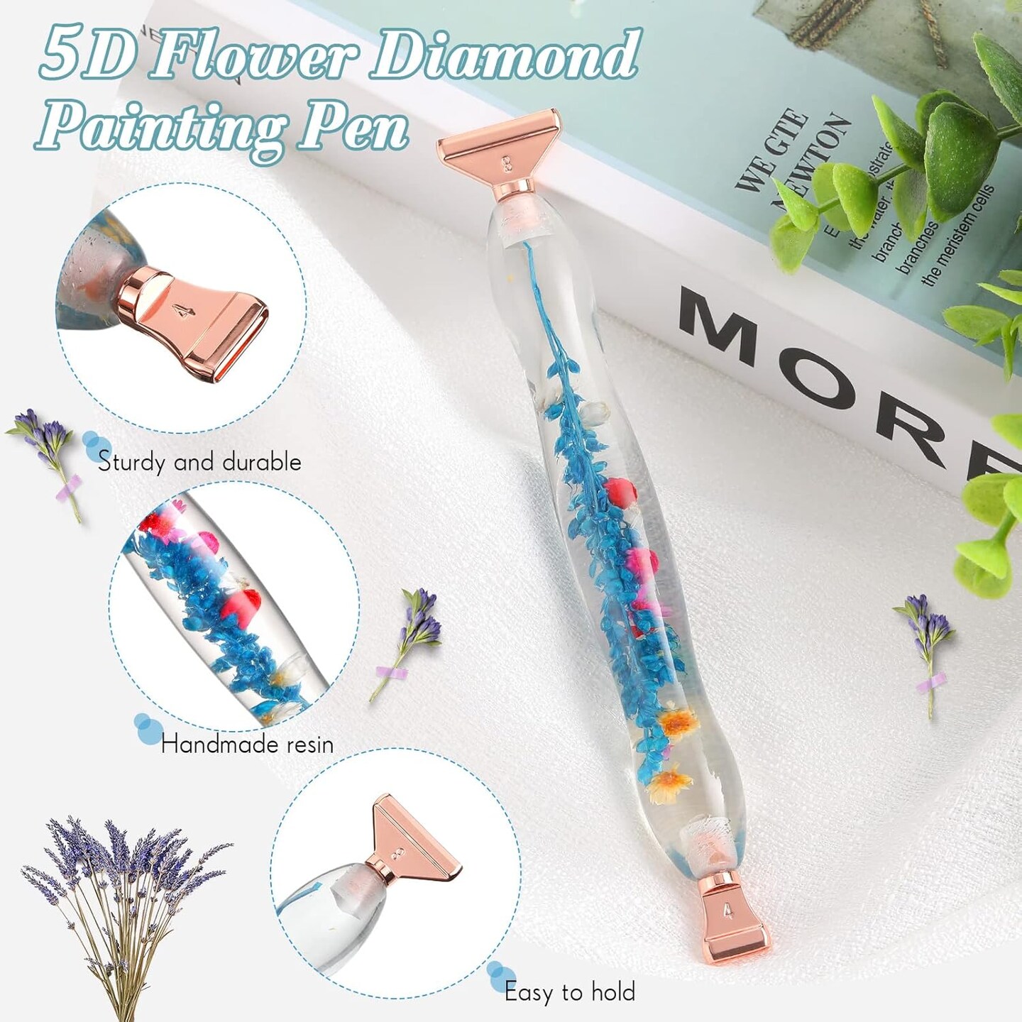 23 Pcs Flower Diamond Painting Art Drill Tool Pen Kits Resin for Adults with Rose Gold Pen Tips Preppy DIY Diamond Art Pens Accessories Nail Art Embroidery Decoration