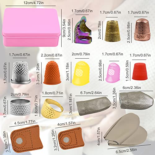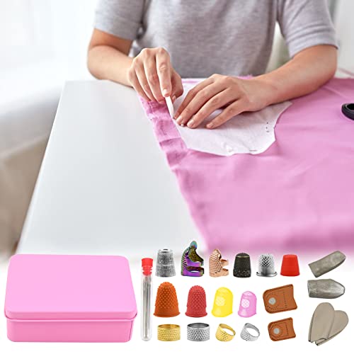 23 Pieces Sewing Thimble Finger Protectors, Adjustable Metal Copper Finger Thimble Silicone Leather Thimble Finger Tips Finger Shield Ring Fingertip Quilting Sewing Supplies for Embroidery Needlework(P)