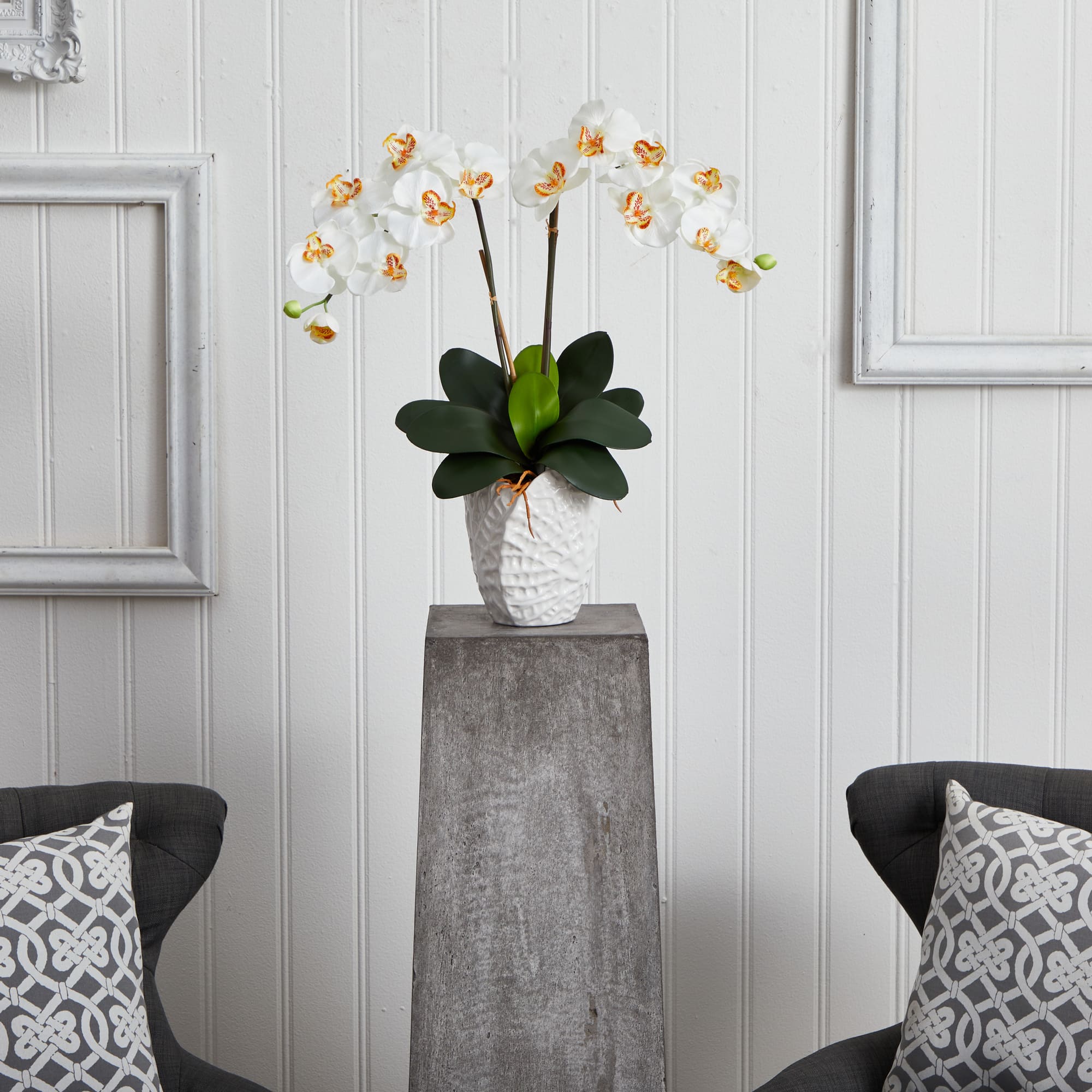 23" White Double Stem Orchid Arrangement in White Textured Vase