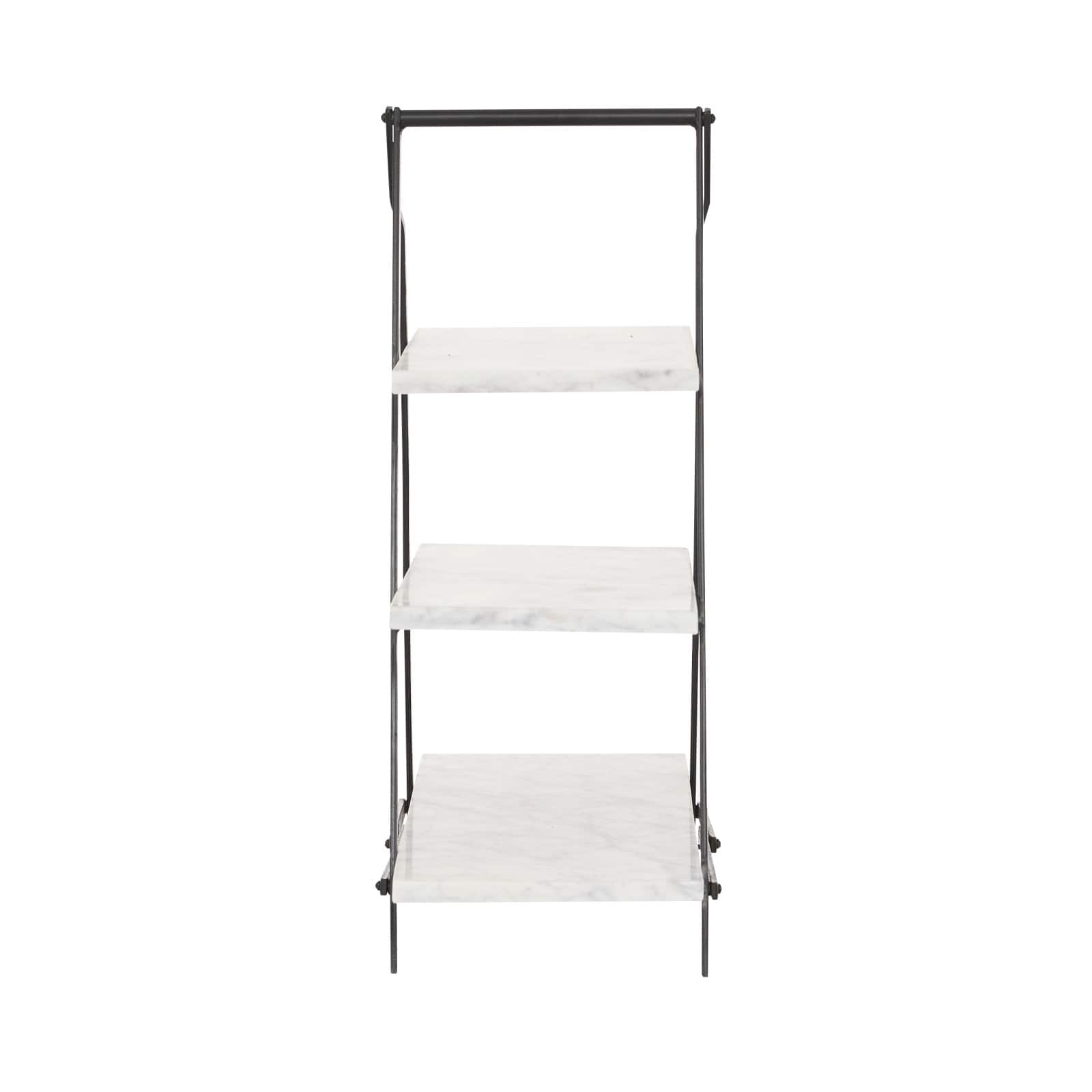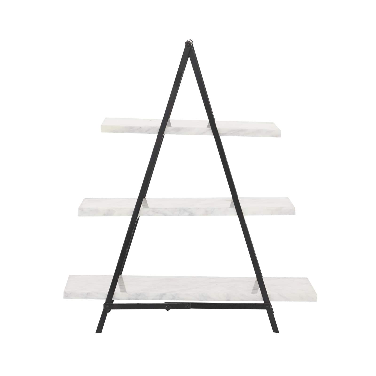 23" White Marble & Iron Contemporary 3-Tier Tray Stand