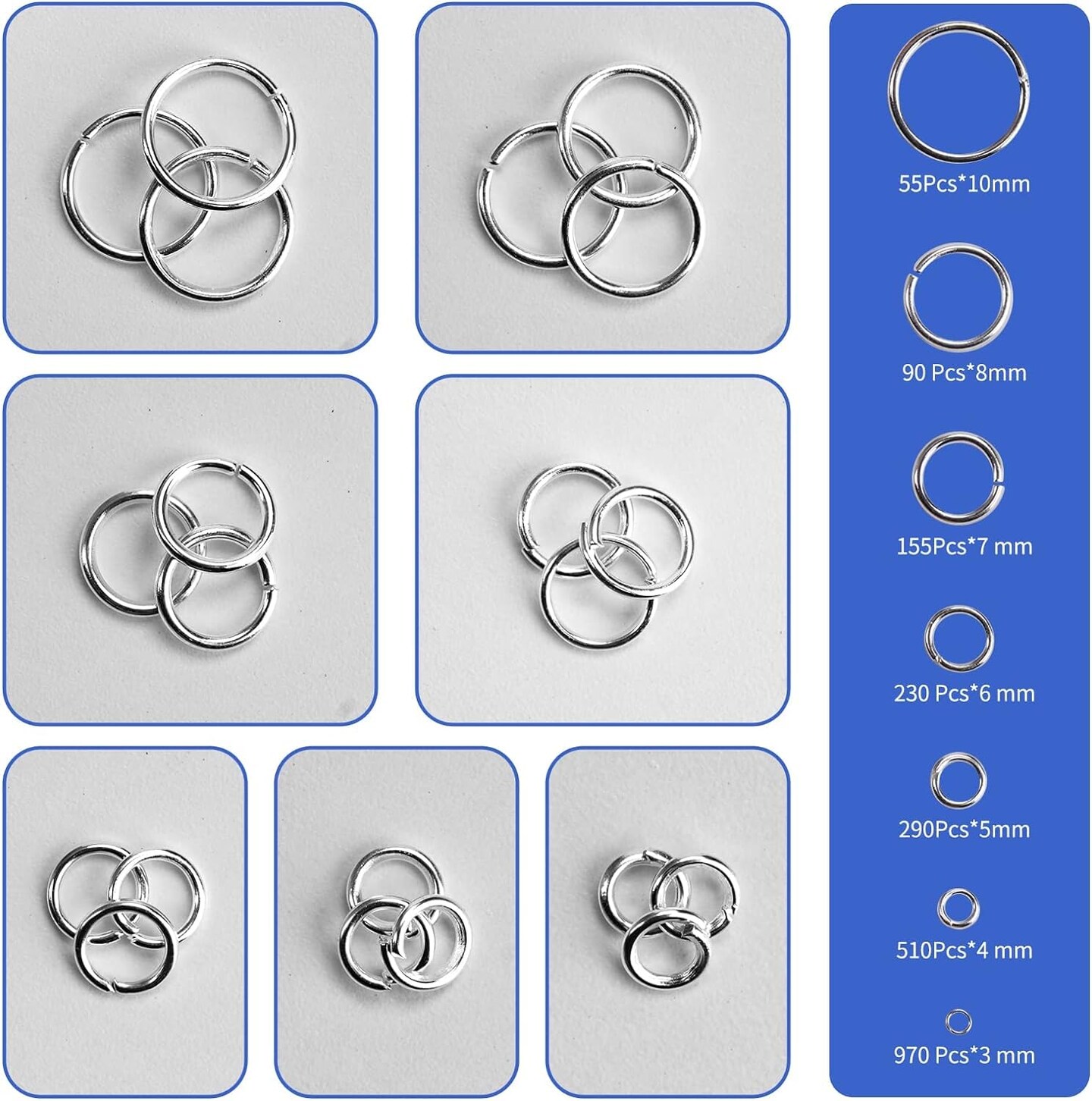 2300pc Assorted Silver Jump Rings for Crafts Jewelry Making Supplies - 7 Sizes (3mm to 10mm) DIY Open Jump Ring Hoops for Chain, Necklaces Links, Bracelets, Earrings, Keychain, Split ring for Crafting
