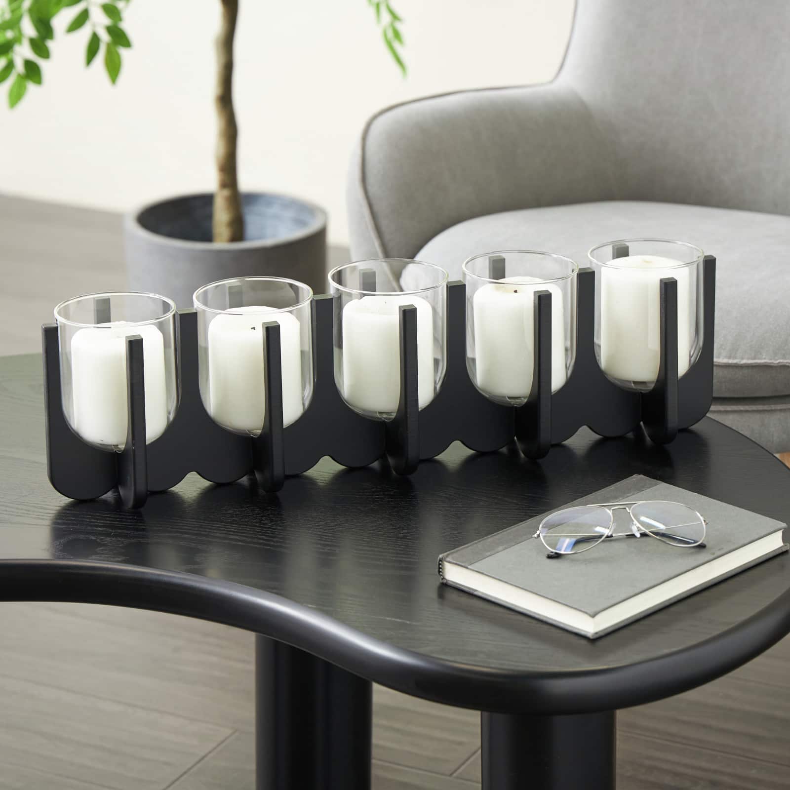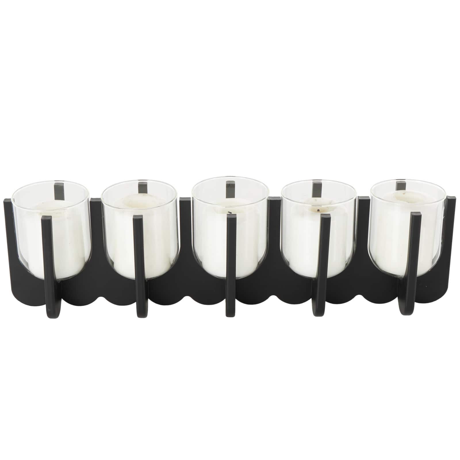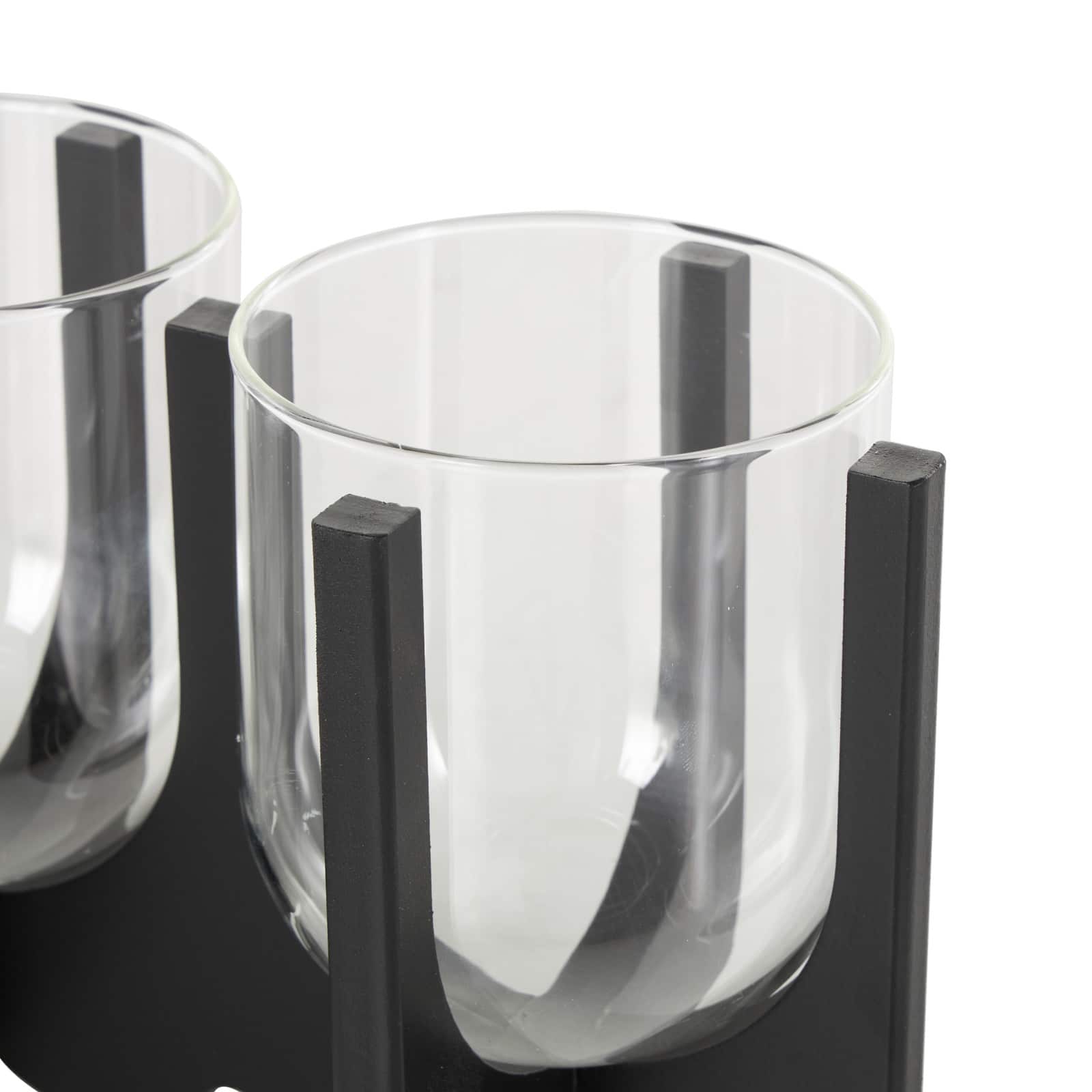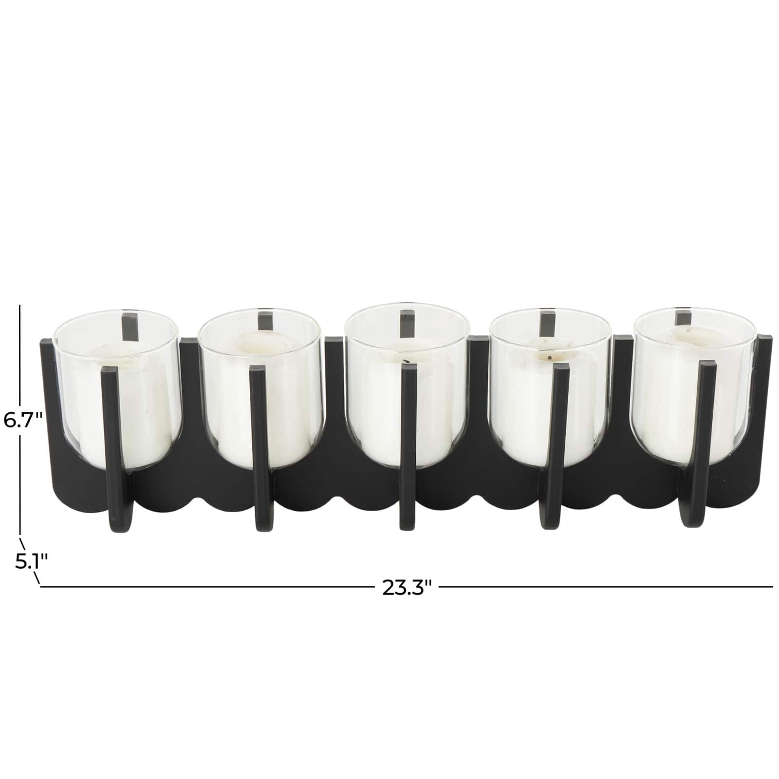 23.25" Black Wood Hurricane 5‑Slot Decorative Candle Holder