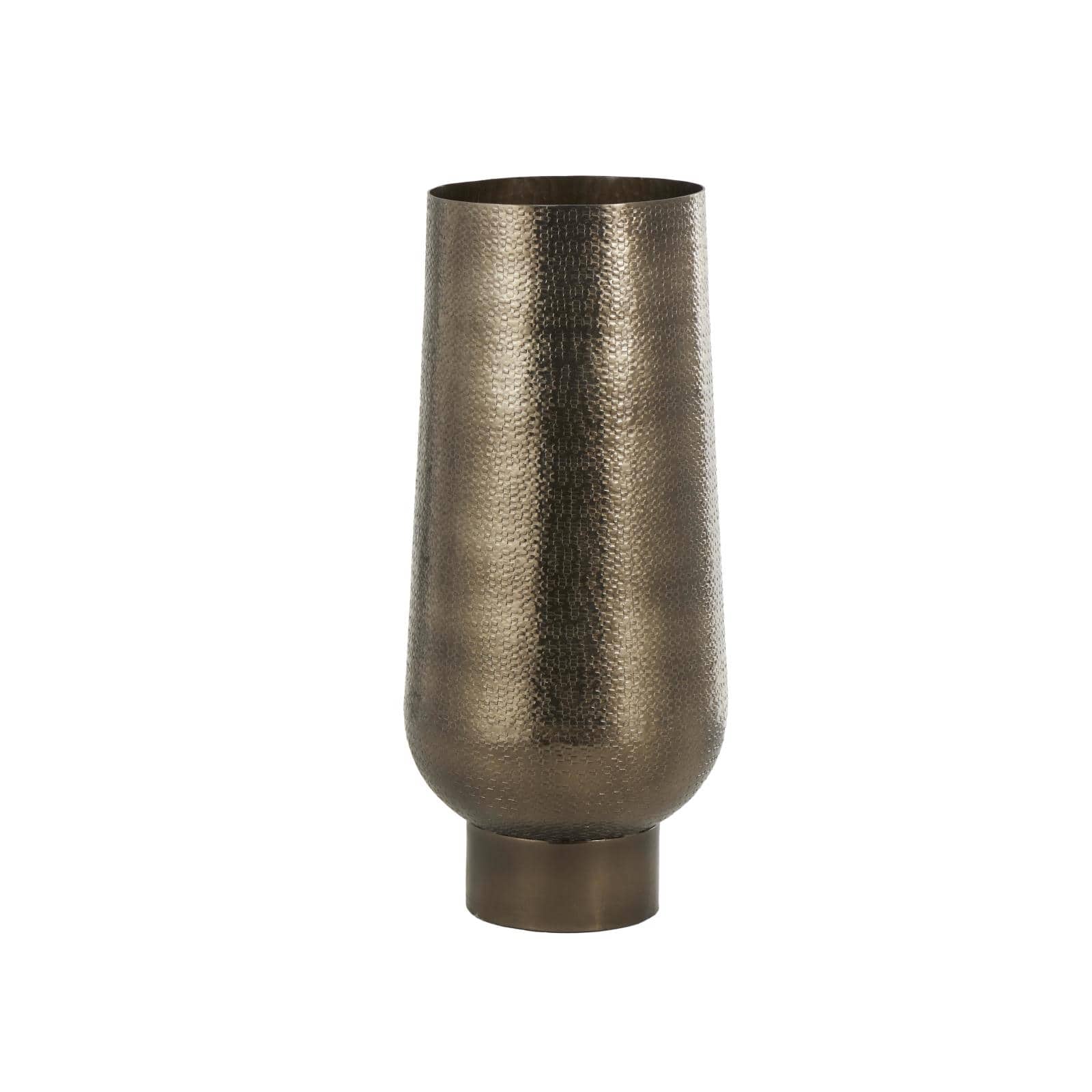 23.5" Brass Aluminum Metal Geometric Textured Wide Floor Vase with Elevated Base