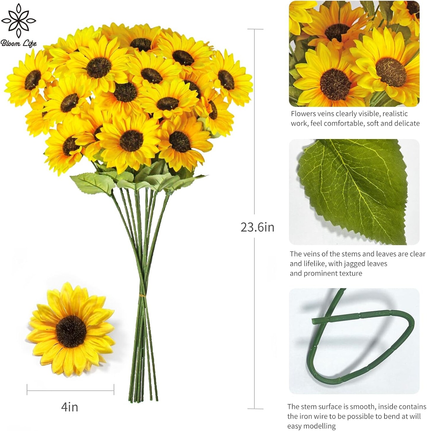 23.6" 10 Bundles of 30 Heads Fake Sunflower Bouquet
